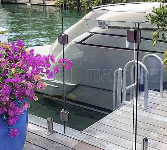 Стекло на креплениях: двустворчатые калитки стекло-стекло