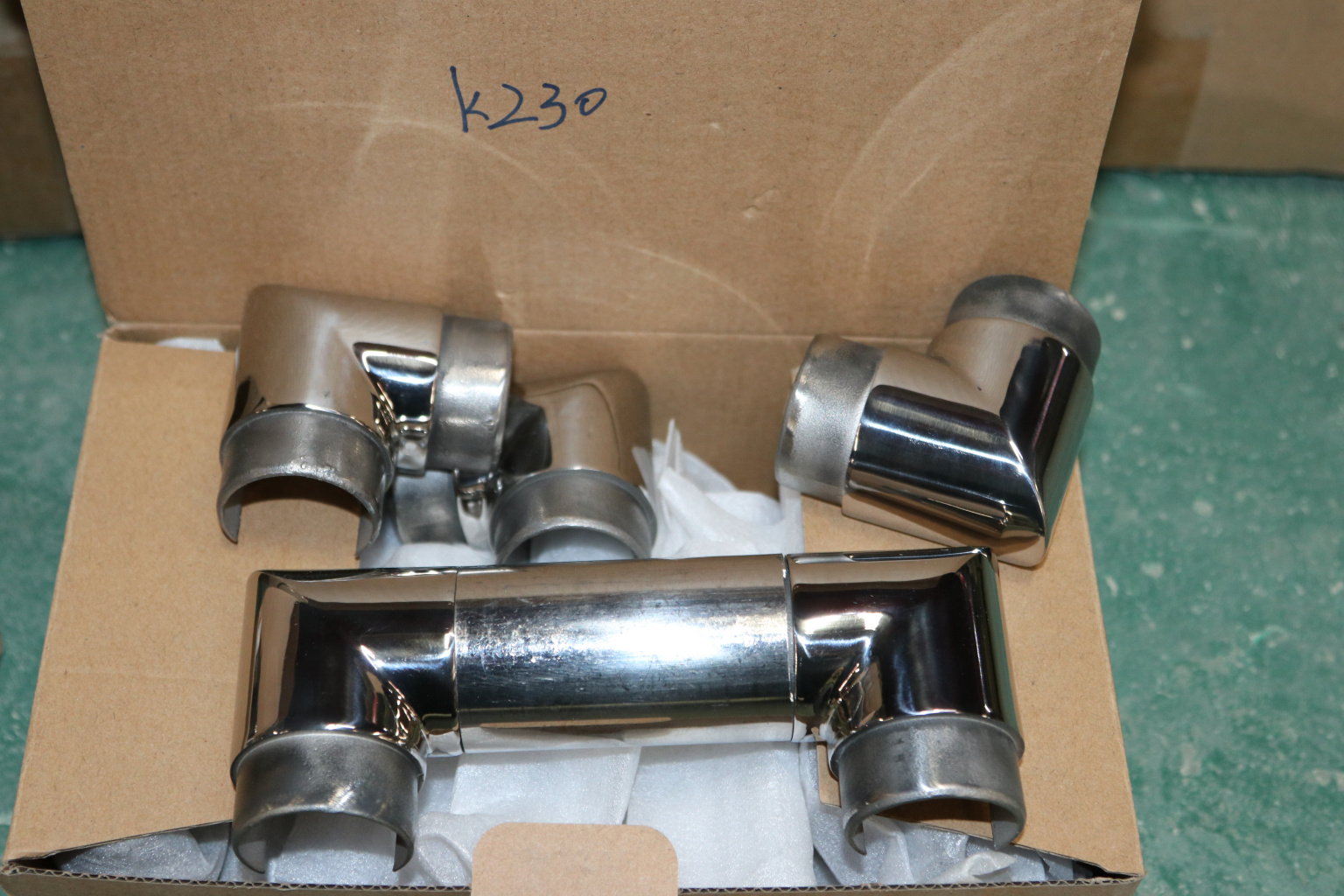 Фитинг предназначен для поворота поручня самосборных ограждений с несущим стеклом под углом 90 градусов в горизонтальной плоскости.