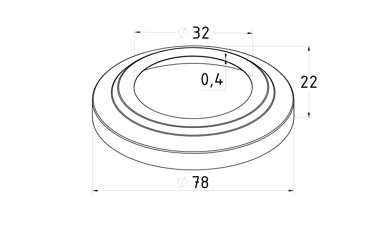 Низ стойки Ø32 мм, S=0,4 мм, внешний Ø78 х12 мм, полированный 400#, марка стали - AISI 201