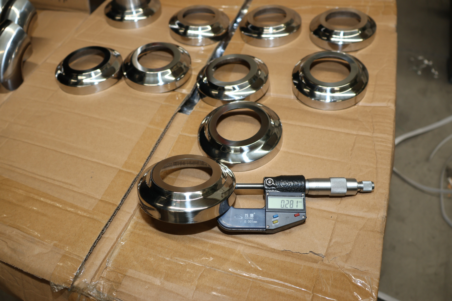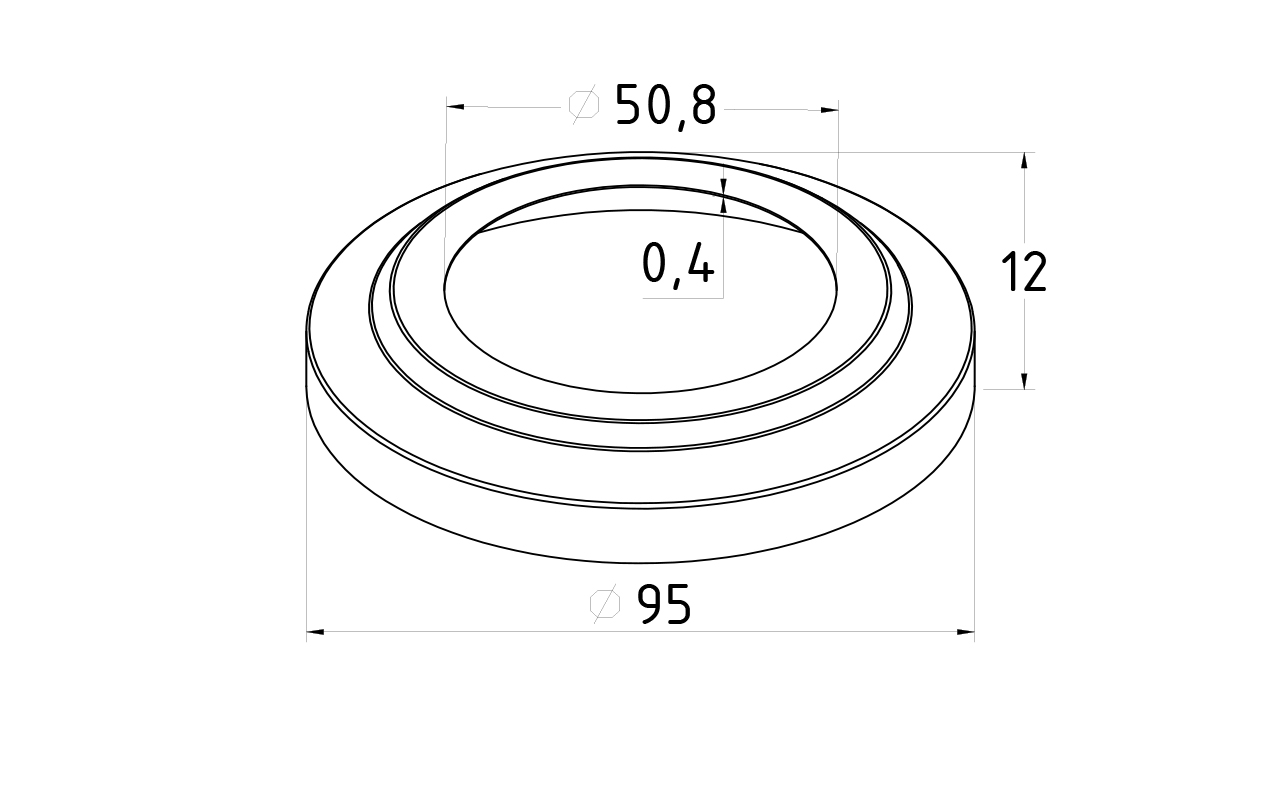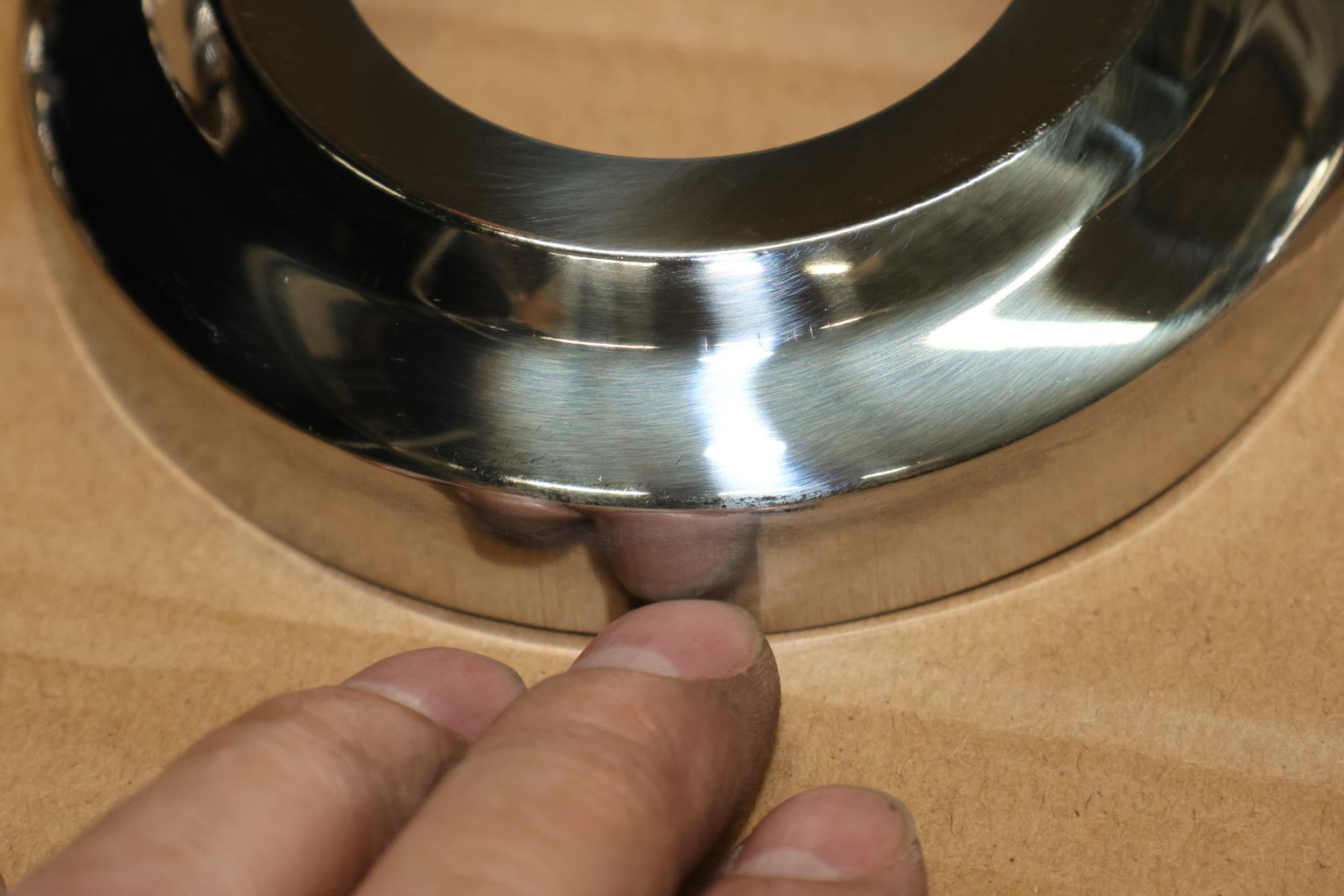 Низ стойки Ø50.8 мм, S=0,4 мм, внешний Ø95х12 мм, полированный 400#, марка стали- AISI 201
