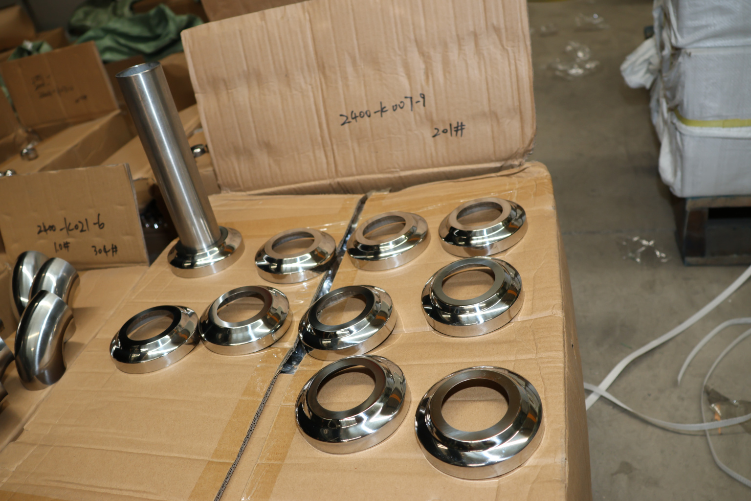 Низ стойки Ø50.8 мм, S=0,4 мм, внешний Ø95х12 мм, полированный 400# AISI 201, k007-9