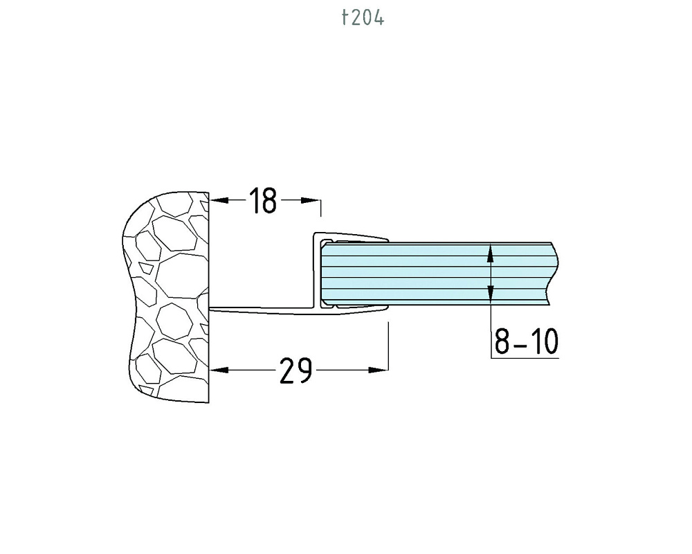 Уплотнитель для стекла 8мм, полупрозрачный черный, 180°, стекло-стекло 2,2 м t204-2 BL