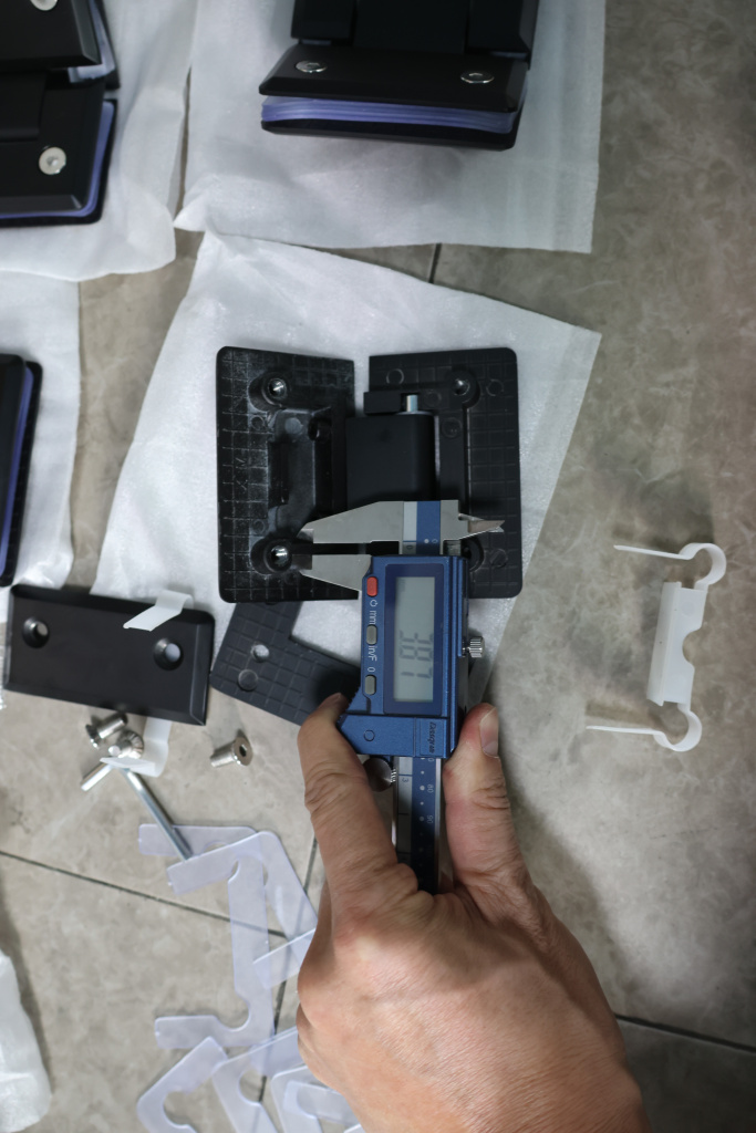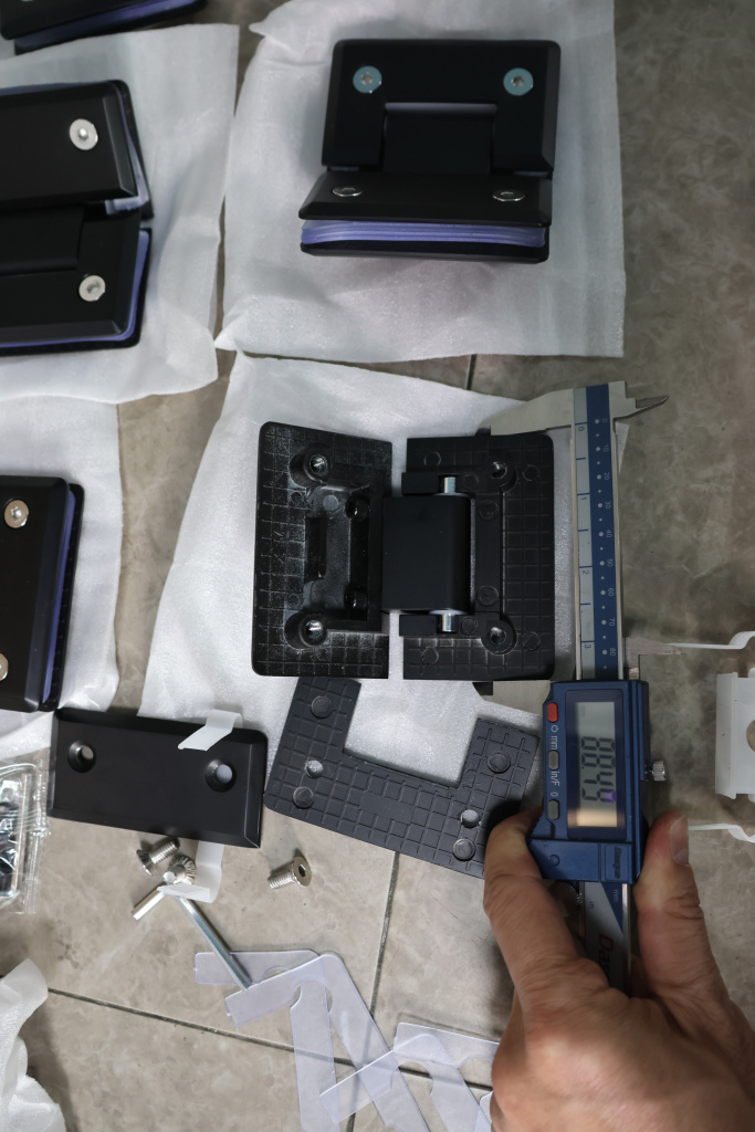 Петля стекло-стекло крепится с обеих сторон на стеклянные поверхности, плотно прижимаясь к ним своими металлическими зажимами.