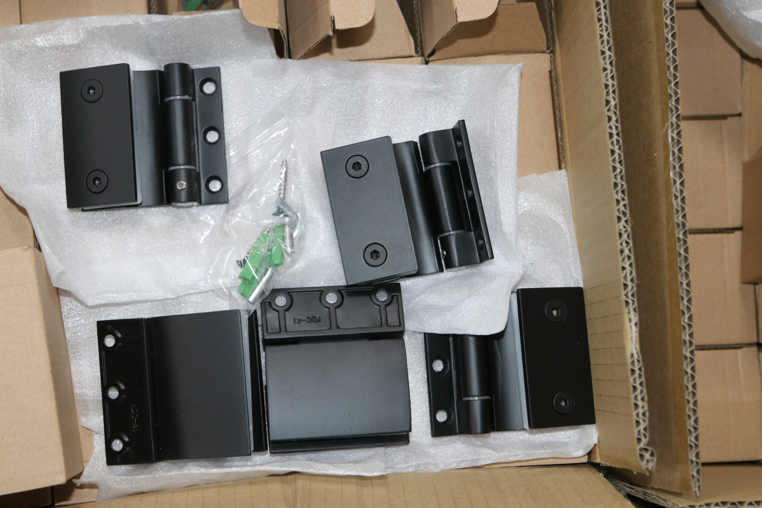 Петля для душевой кабины стена-стекло 90° с односторонним креплением, нержавеющая, без реза уплотнителя, черный. Выдерживает нагрузку 35 кг на две петли.