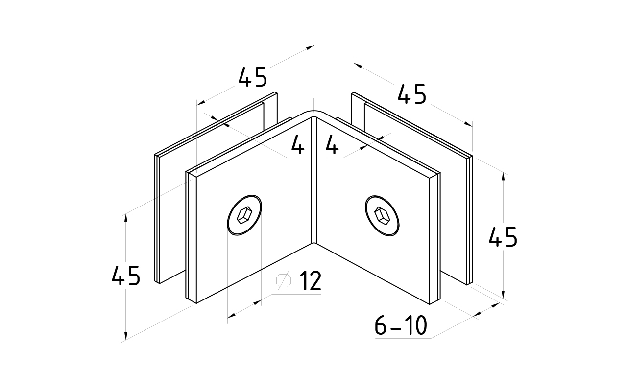 Коннектор для душевой кабины стекло-стекло 90°, 45х45, черный, t735 BZn