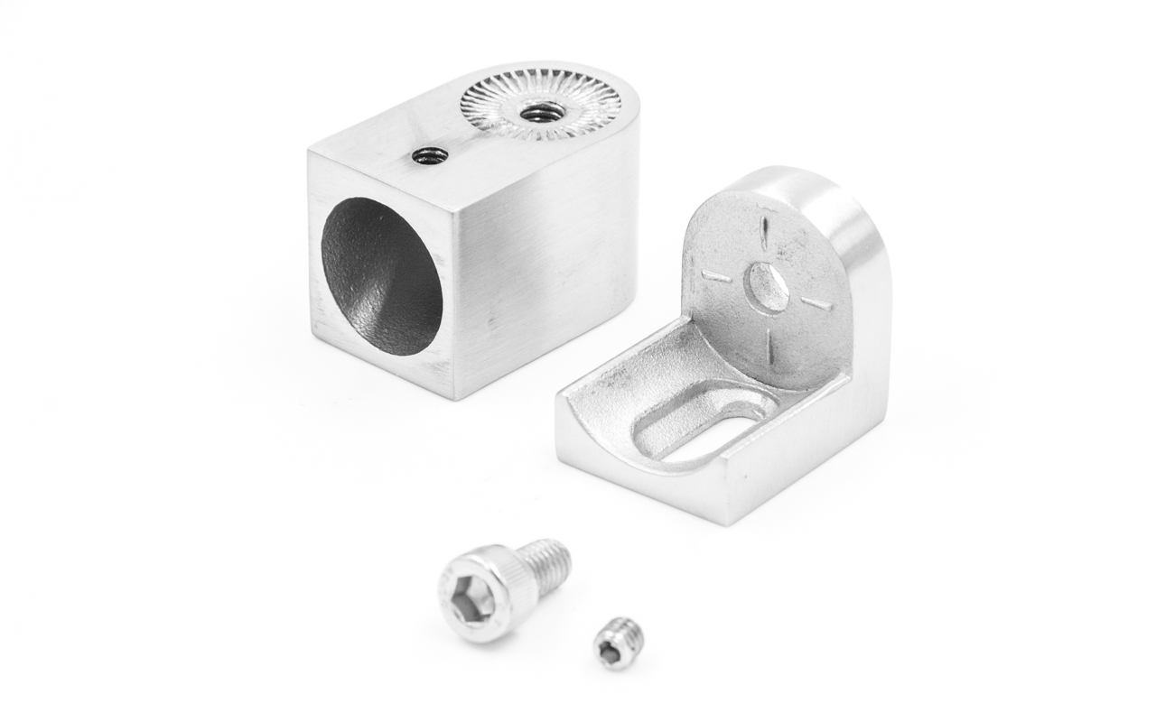 откручиваем центральный винт. Пятку крепим к стене с помощью самореза и дюбеля, вторую часть надеваем на трубу и шестигранником фиксируем трубу. Закручиваем центральный винт- соединяем две половины держателя.