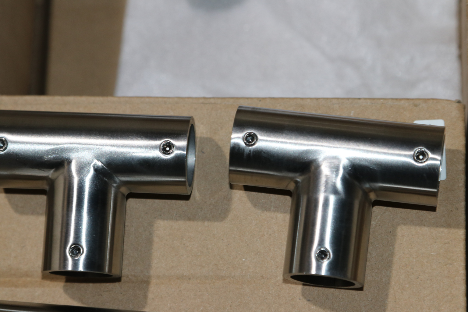 Труба вставляется в тройник со всех сторон и фиксируется с помощью шестигранника