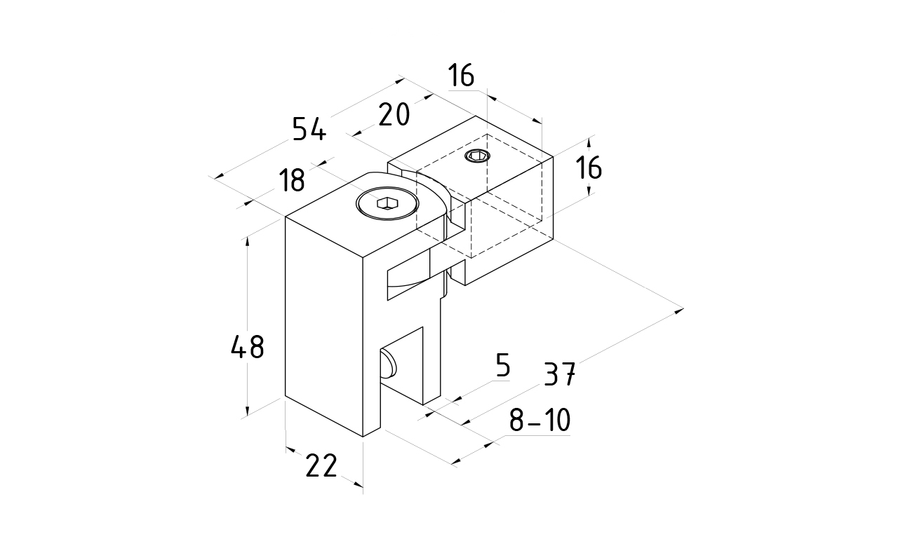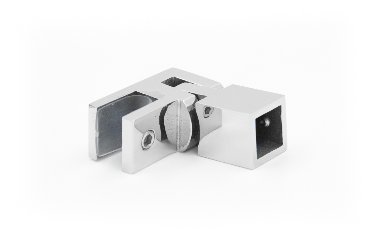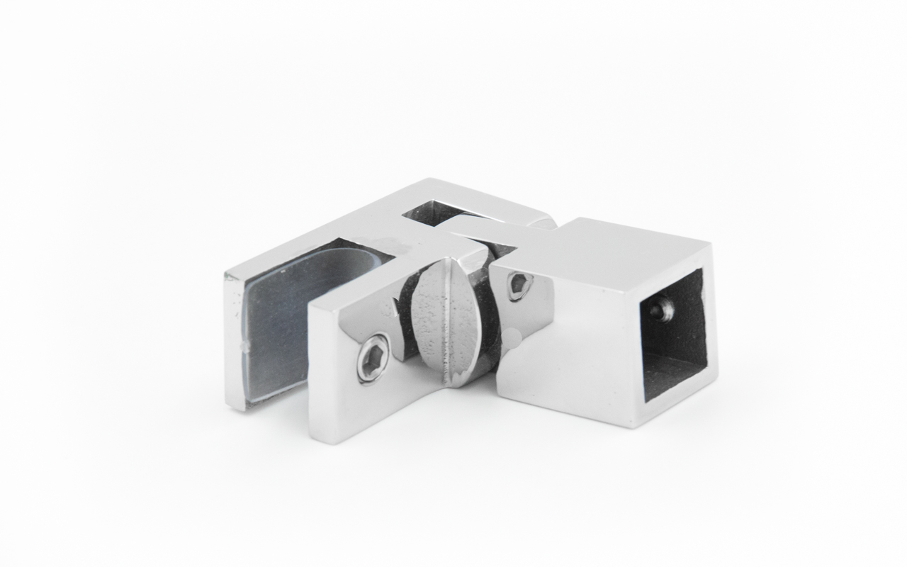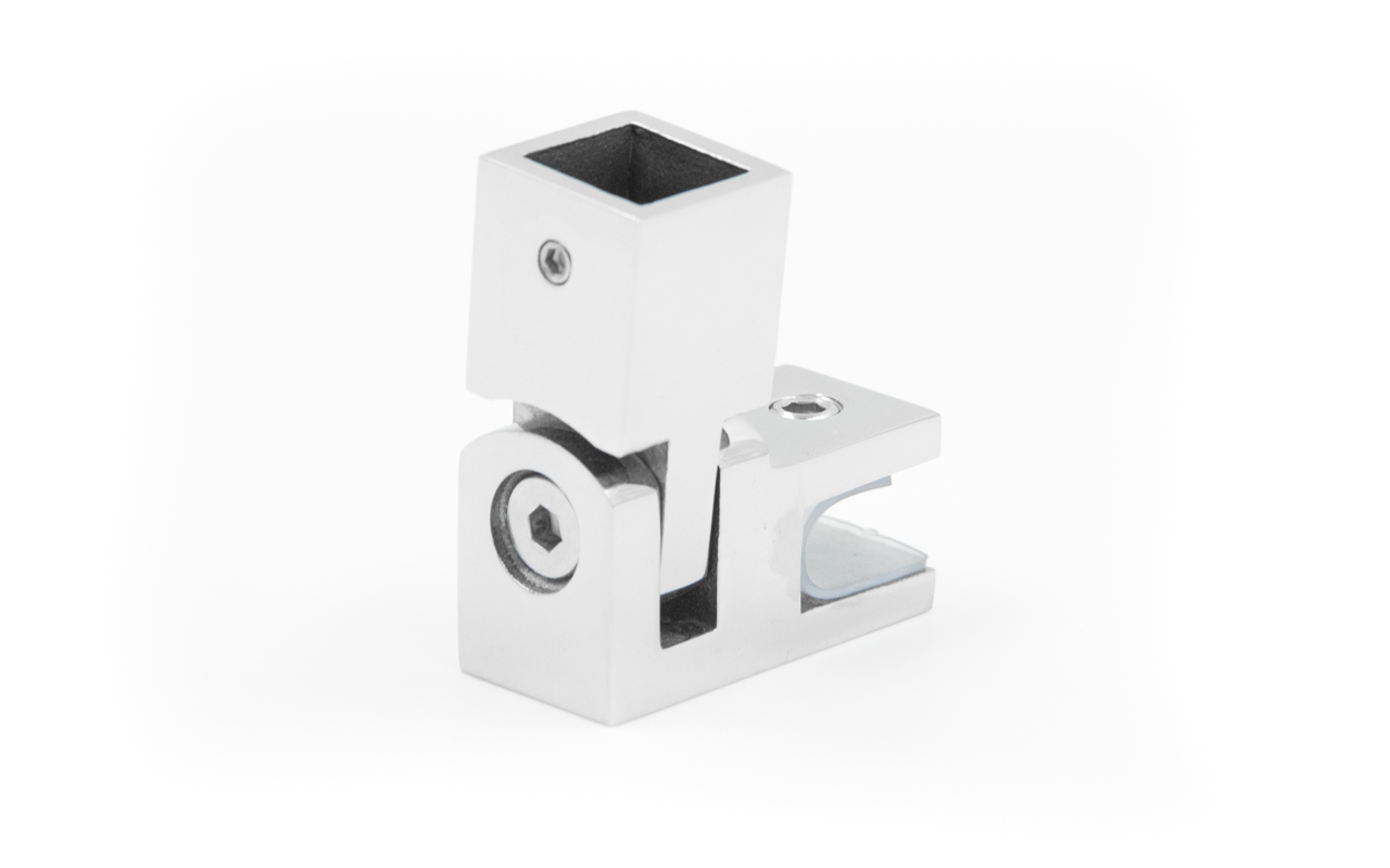 Коннектор предназначен для крепления трубы 15х15 мм к стеклу под произвольным углом при монтаже штанг верхней обвязки душевых кабин.
