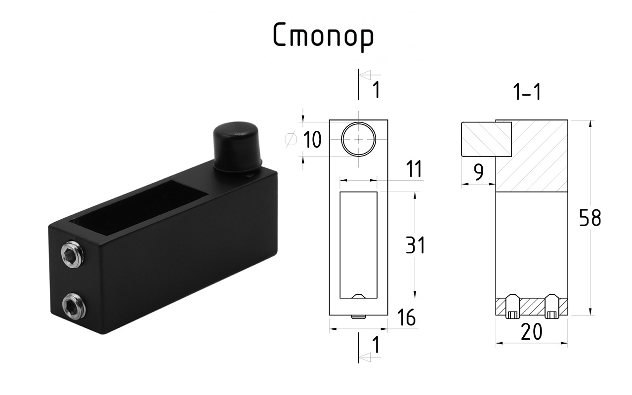 Коннектор регулируемый для трека 30х10 мм, нержавеющая сталь AISI 304, черная t465 BL купить в Алматы