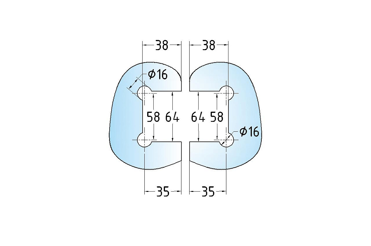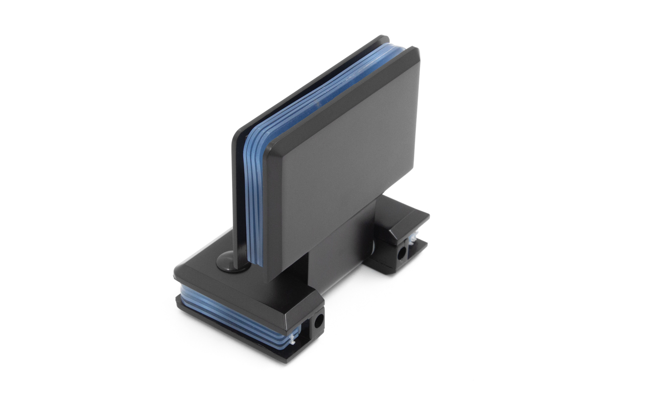Петля стекло-стекло для соединения стеклянной двери с неподвижным стеклом под углом 180°. Поворот петли в обе стороны с фиксацией на 90º. Масса двери может составлять до 35 кг на две петли.