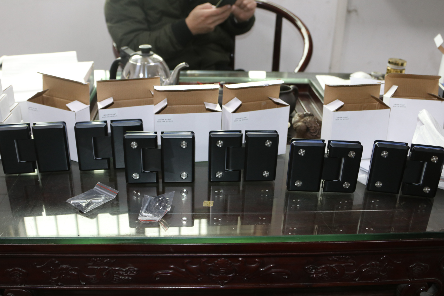 Петля для душевой кабины стекло-стекло 180°, 90*55 цинк, черная