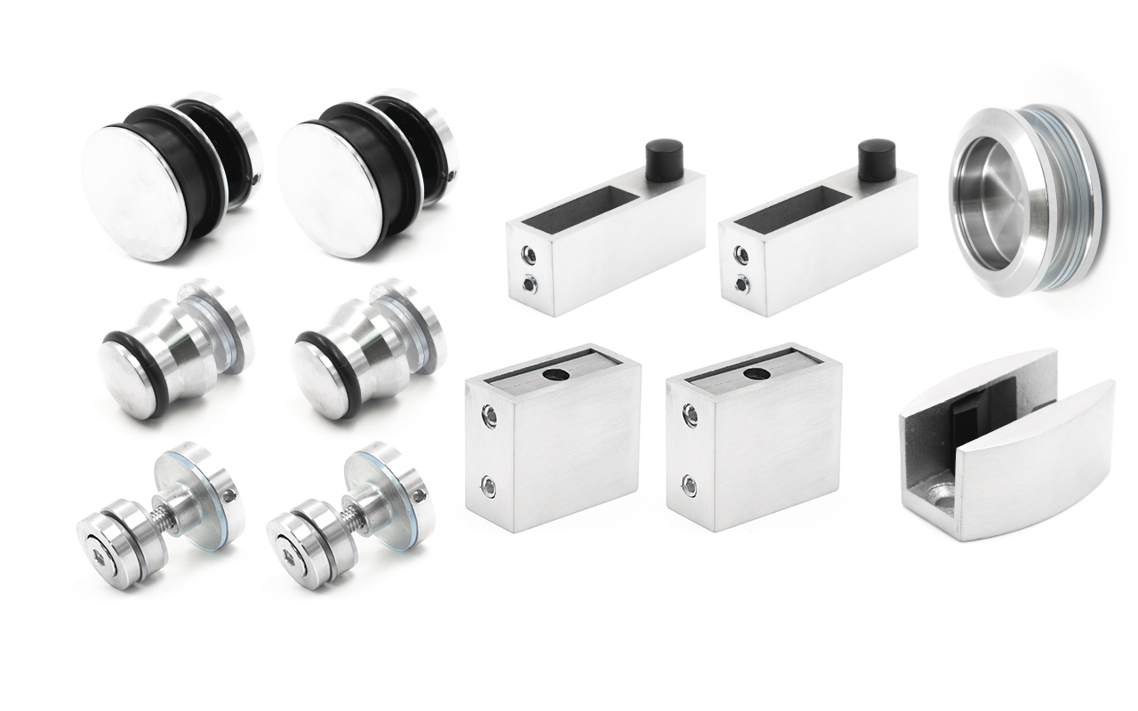 Комплект раздвижной системы для душевой, AISI 304, шлифованный. Толщина стекла равна 8 мм. Максимальный вес двери на одну каретку равен 60 кг.