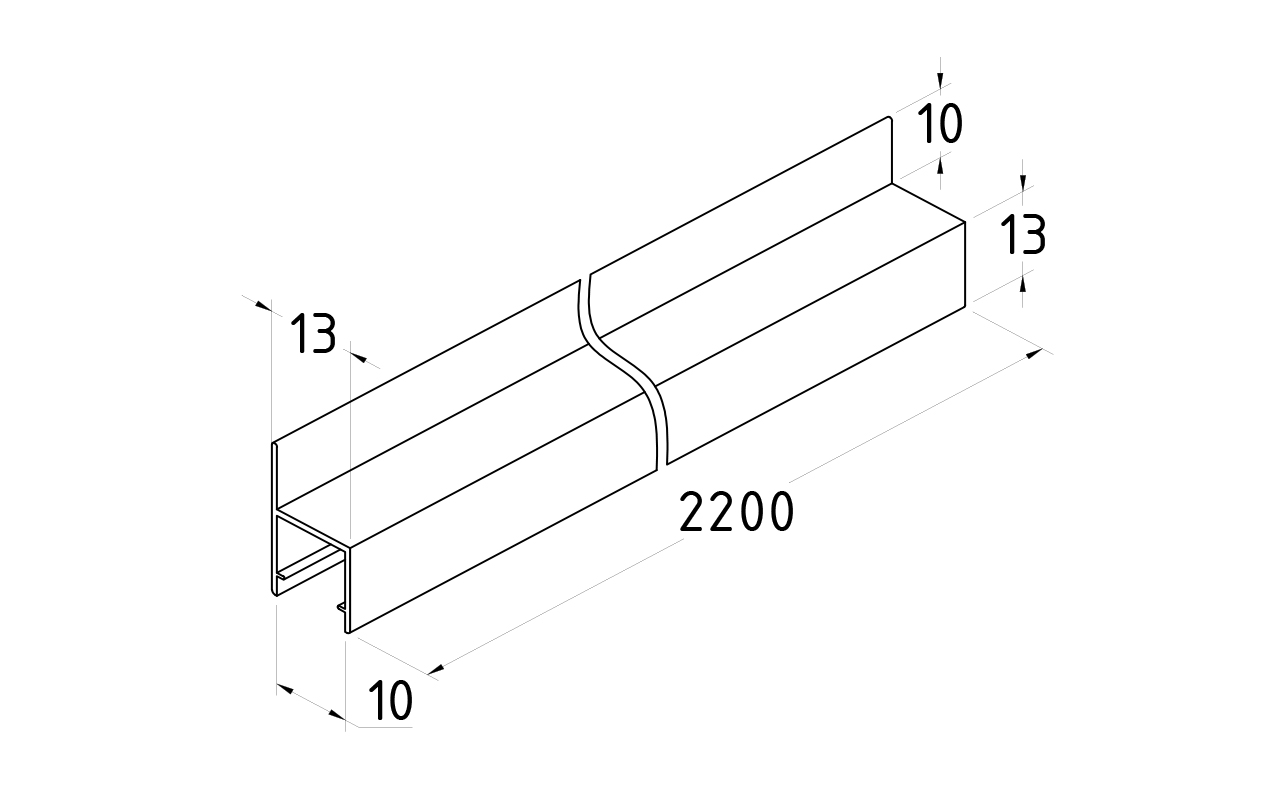 Длина 2200 мм. Монтируется по всему периметру стеклянного листа. Позволяет соединять стеклянные панели между собой
