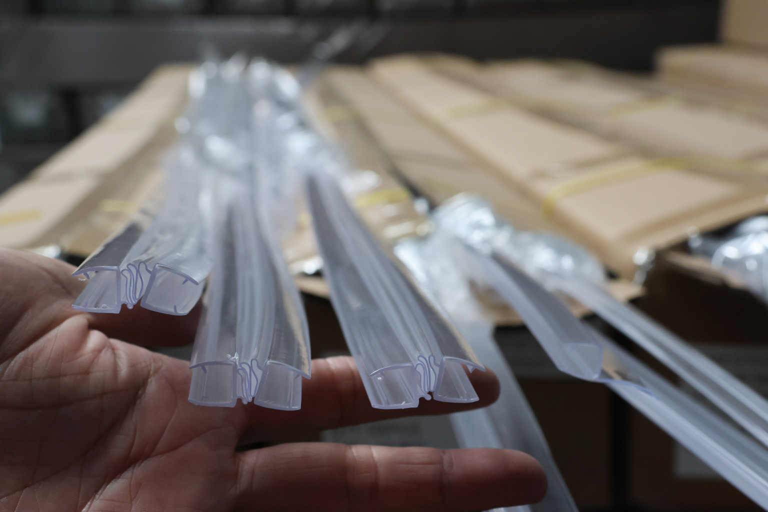 Монтируется по всему периметру стеклянного листа. Позволяет закрыть зазор между стёклами и добавить герметичности душевой кабине.