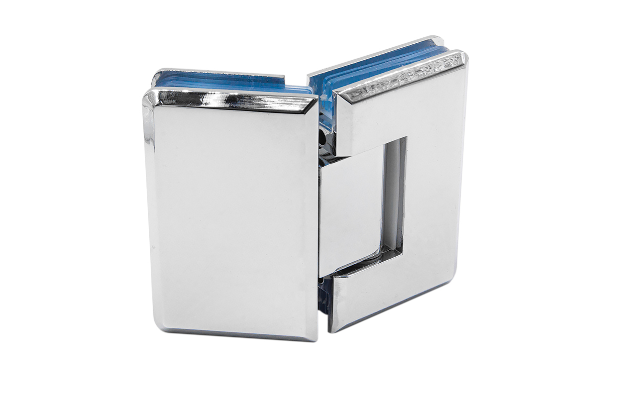 Петля из цинка предназначена для стыковки между собой конструкционных элементов из стекла, толщина которых находится в диапазоне от 8 до 10 мм. Максимальный вес двери на 2 петли составляет 35 кг. Этот вид петель подразделяется по типоразмеру на правый и левый. В конструкции заложена система скрытого крепежа. Имеет функцию доводчика до закрытия от 25°. Максимальный угол разведения стыковочных элементов в плане составляет 135°.