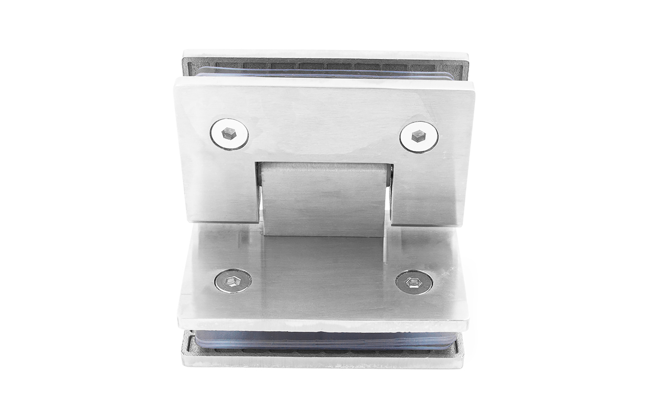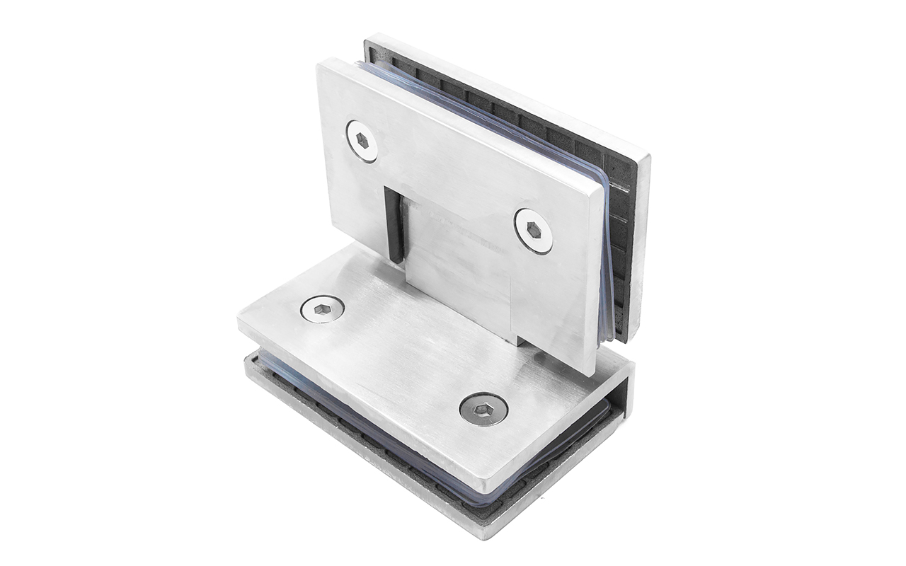 Материалы из нержавеющей стали отличаются надежностью стыковки стеклянных полотен, а также высокой стойкостью к коррозии. Именно последнее качество лежит в основе долговечной эксплуатации. Представленный здесь вид петель имеет конфигурацию стекло-стекло и позволяет закрывать двери душевых кабин в диапазоне с 250 до 900. В них реализована функция доводчика, что делает их эксплуатацию эргономичной. Прокладка обеспечивает место стыковки двух полотен из стекла не только герметичностью, но и поглощением вибраций.
