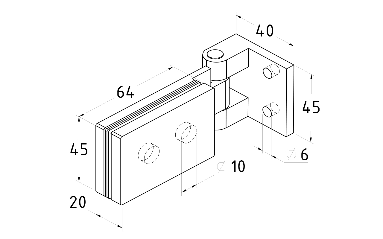 Петля для душевой кабины стена-стекло, AISI 304 t323 PSS