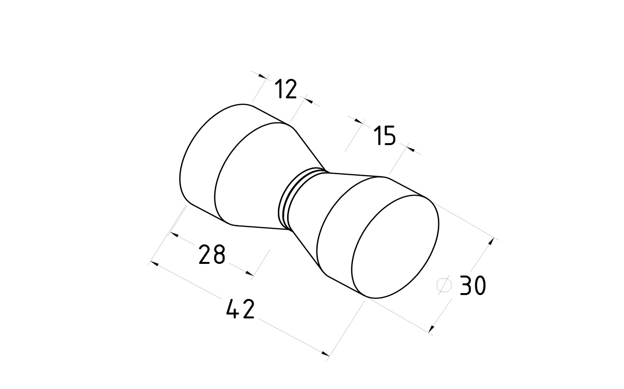 Дверная ручка «кноб» для душа, алюминий-хром, полированная. Диаметр отверстия в стекле - 10 мм