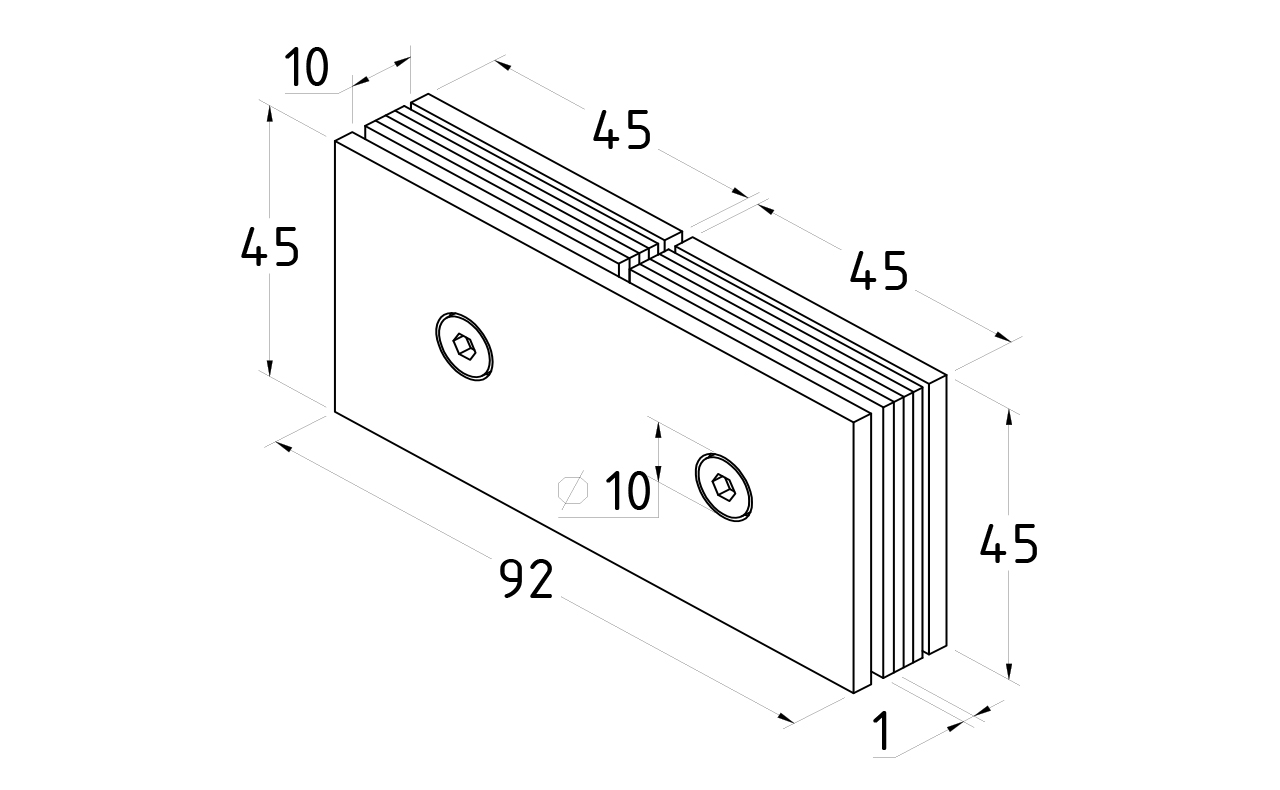 Коннектор для душевой кабины стекло-стекло 180°, 45х45, нерж 304, вырез 64 t724 SSS