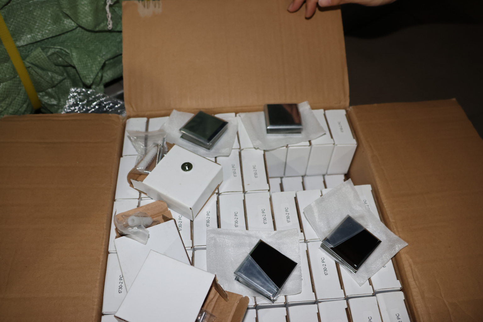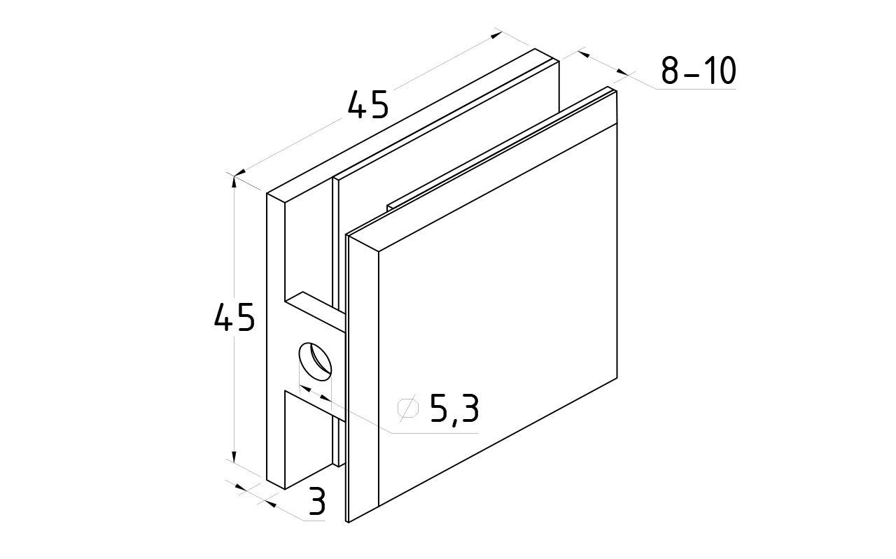 Коннектор разбирается на две половинки, Г-образной стороной крепится к стене на саморезы. Затем к нему прикладывается стекло с заранее заготовленным вырезом согласно чертежу, а далее второй половинкой стекло зажимается.