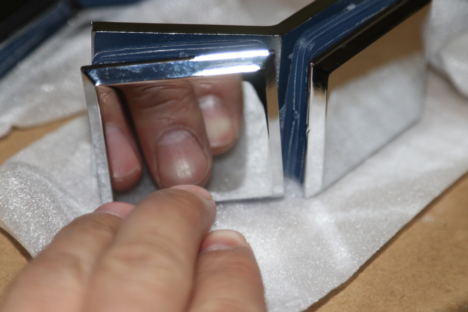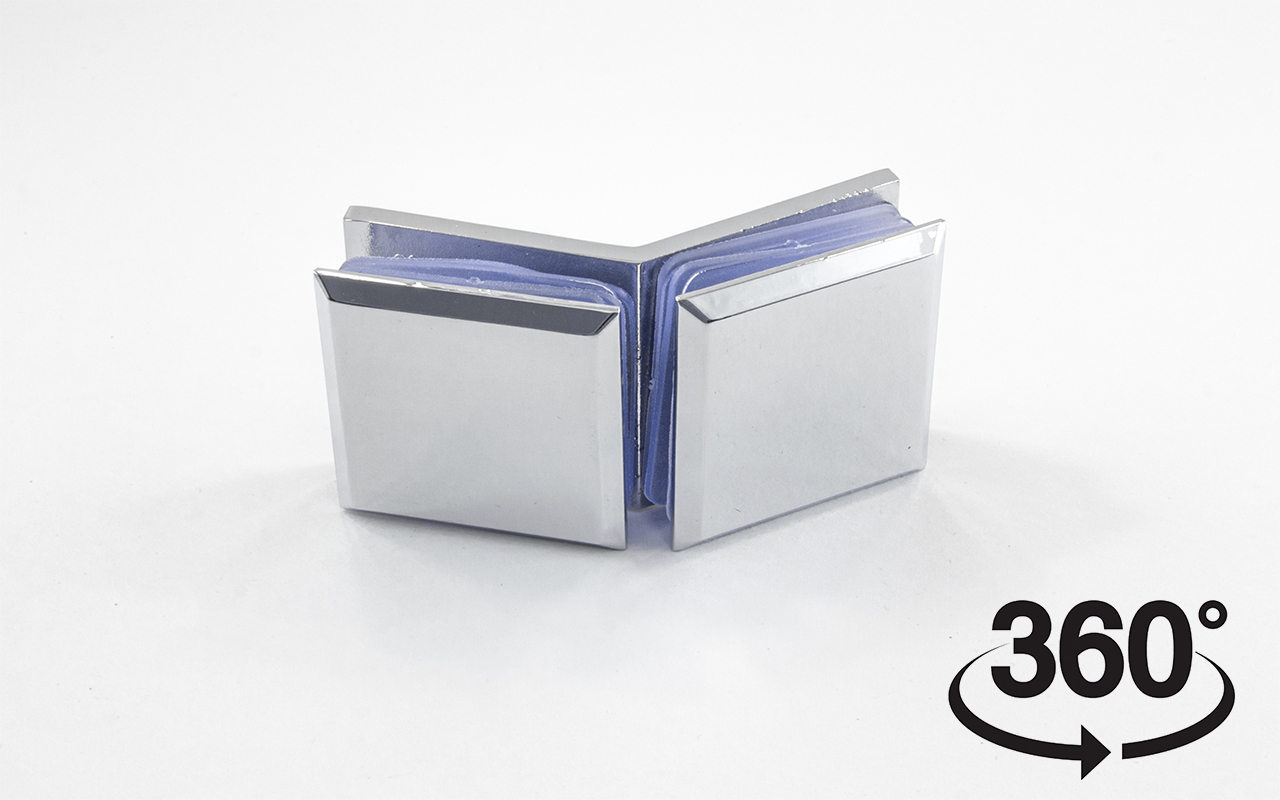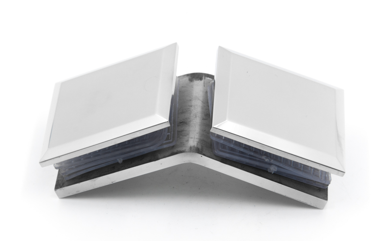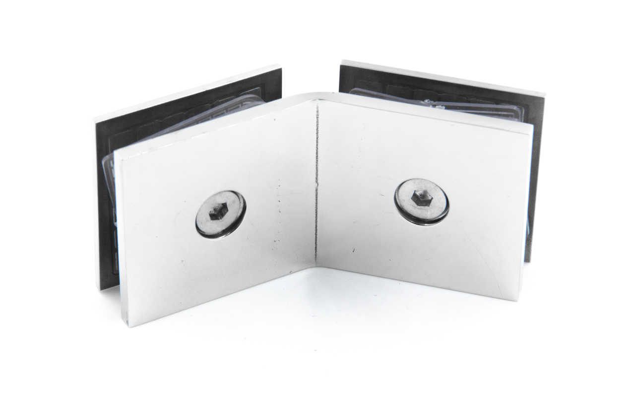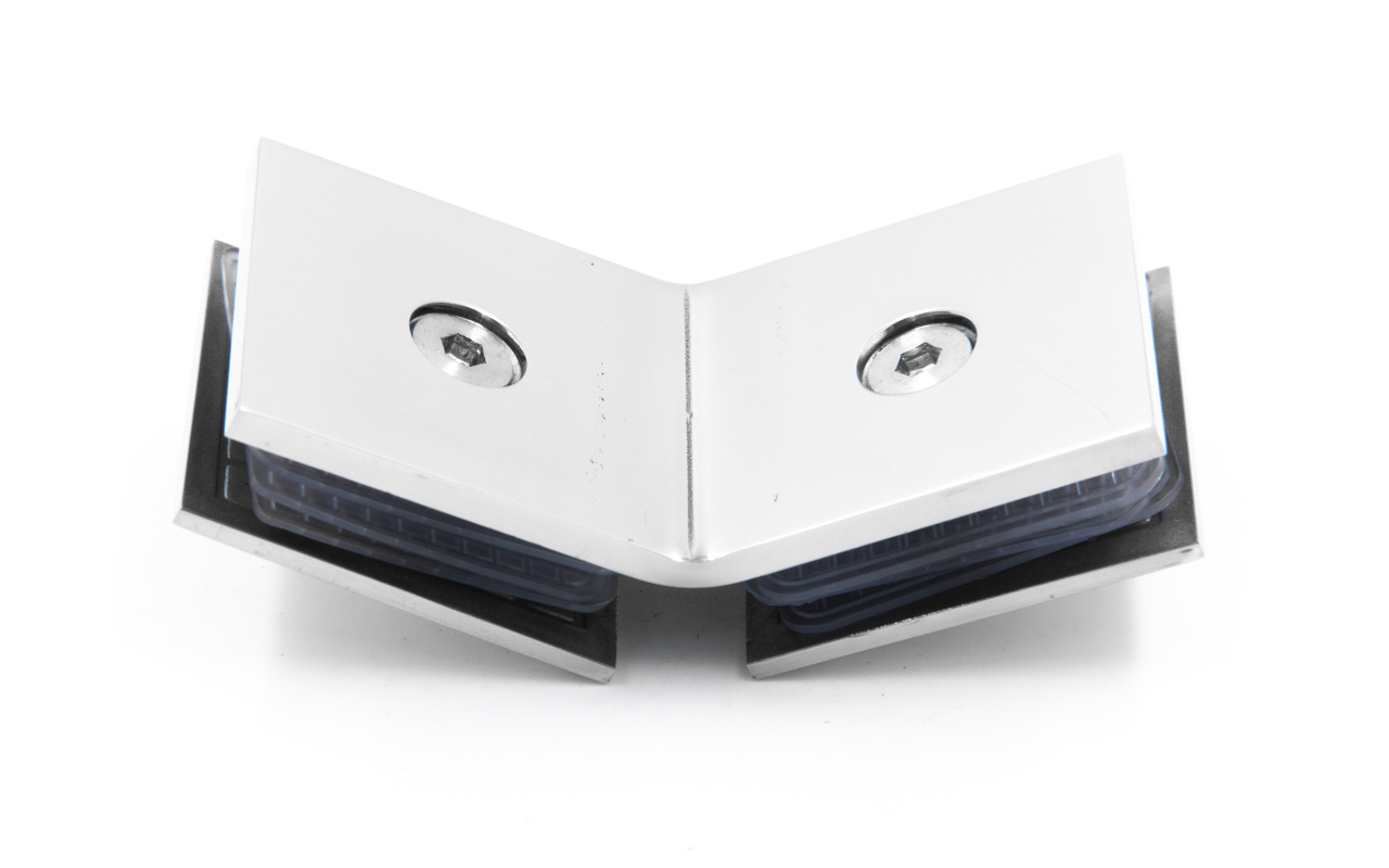 Коннектор для душевой кабины стекло-стекло 135°, 45х45 мм. Материал - латунь-хром, поверхность - полированная