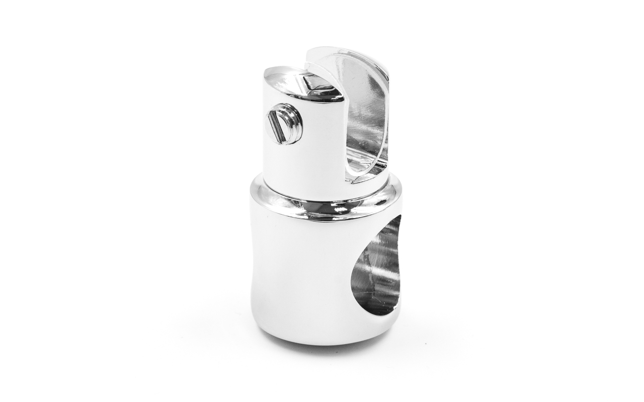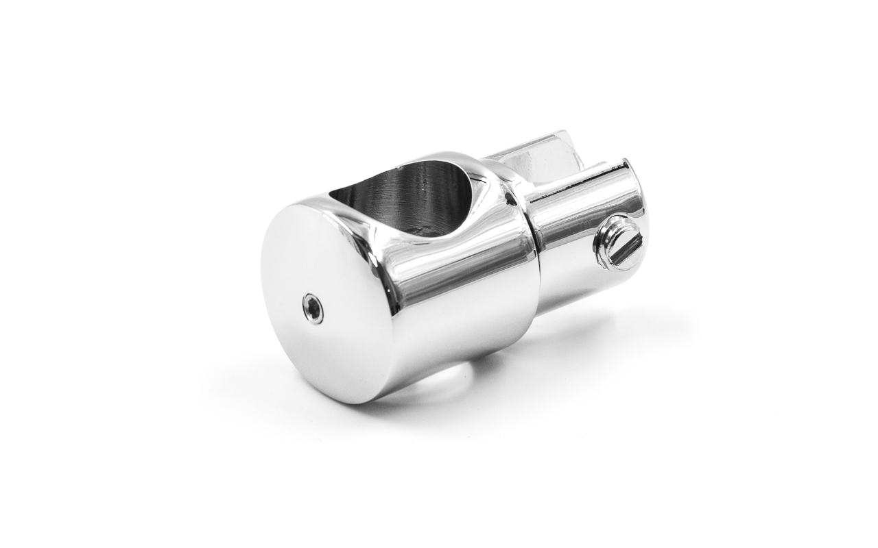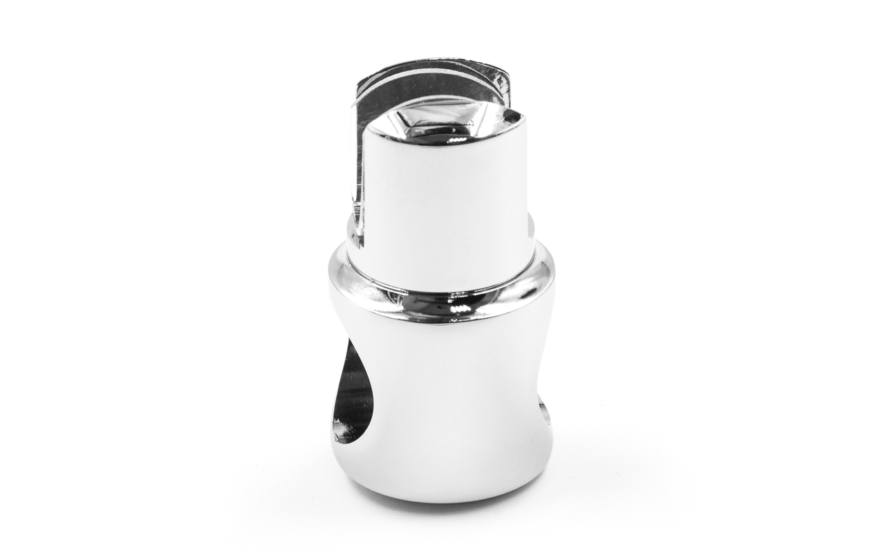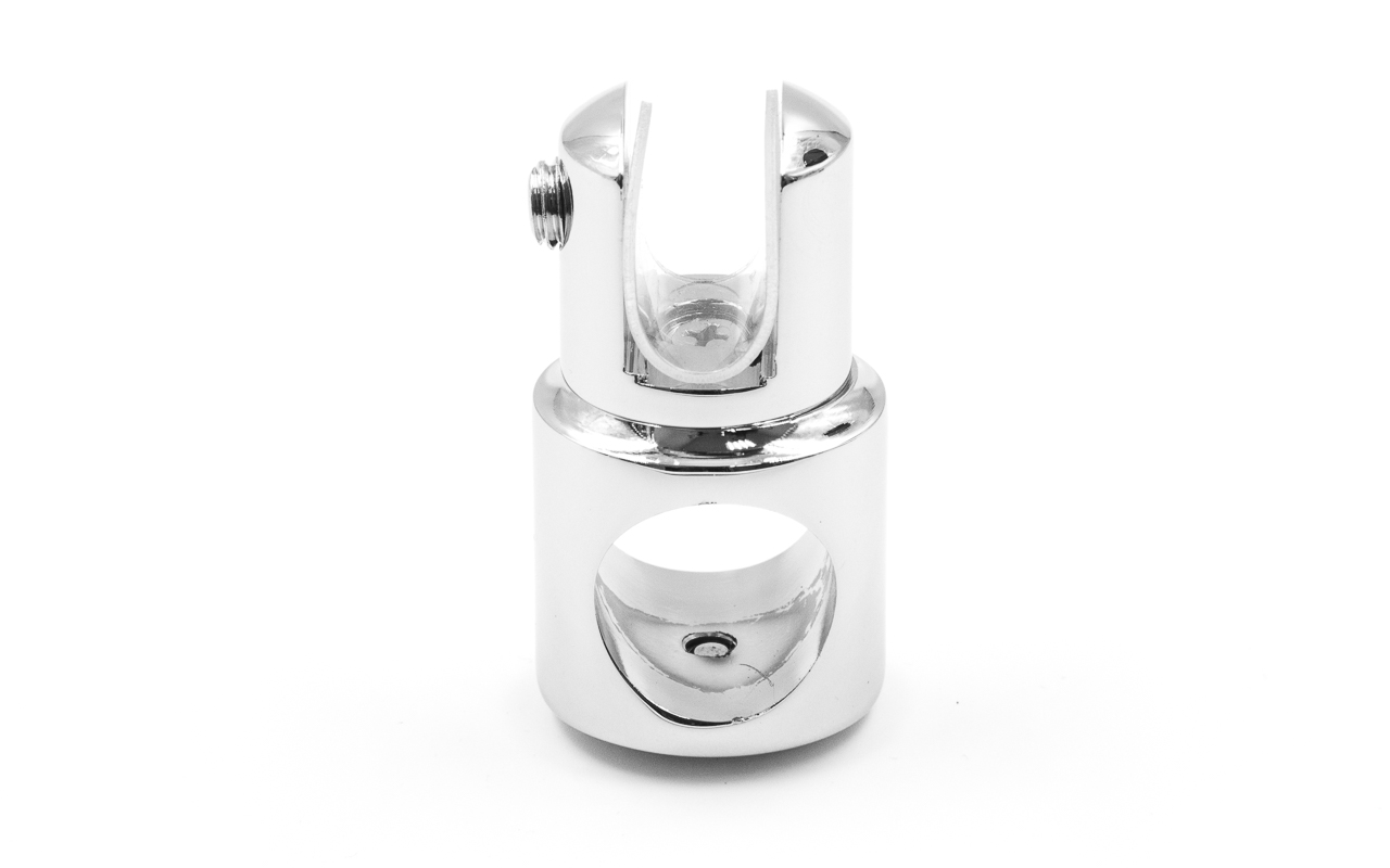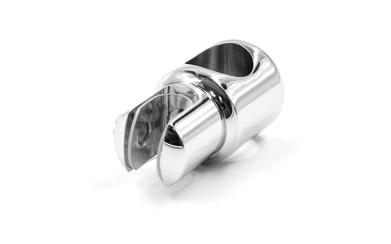 Крепежный элемент труба-стекло. Предназначен для соединения штанги в душевых кабинах со стеклом на любом участке штанги. Материал - латунь-хром, поверхность - полированная