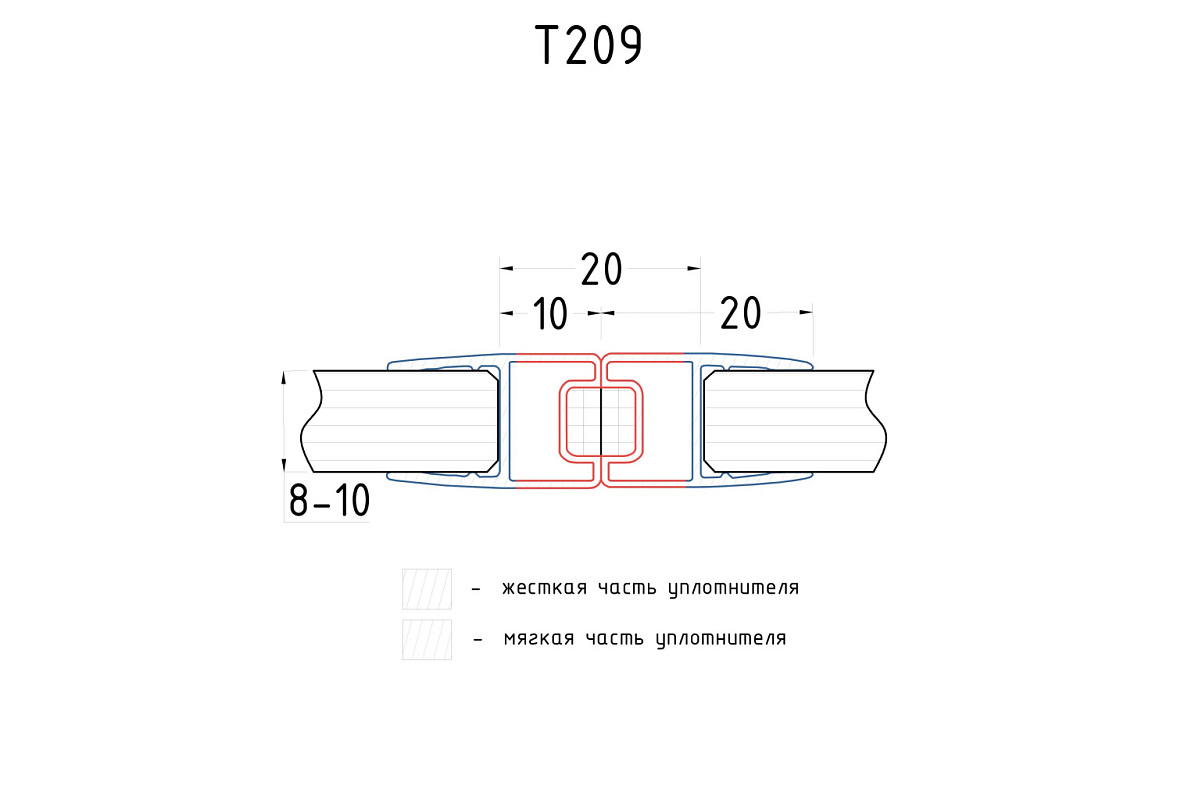 Комплект уплотнителей для стекла в душевую кабину (2 шт.), стекло-стекло 8 мм, с магнитом 180°, 2200 мм t209