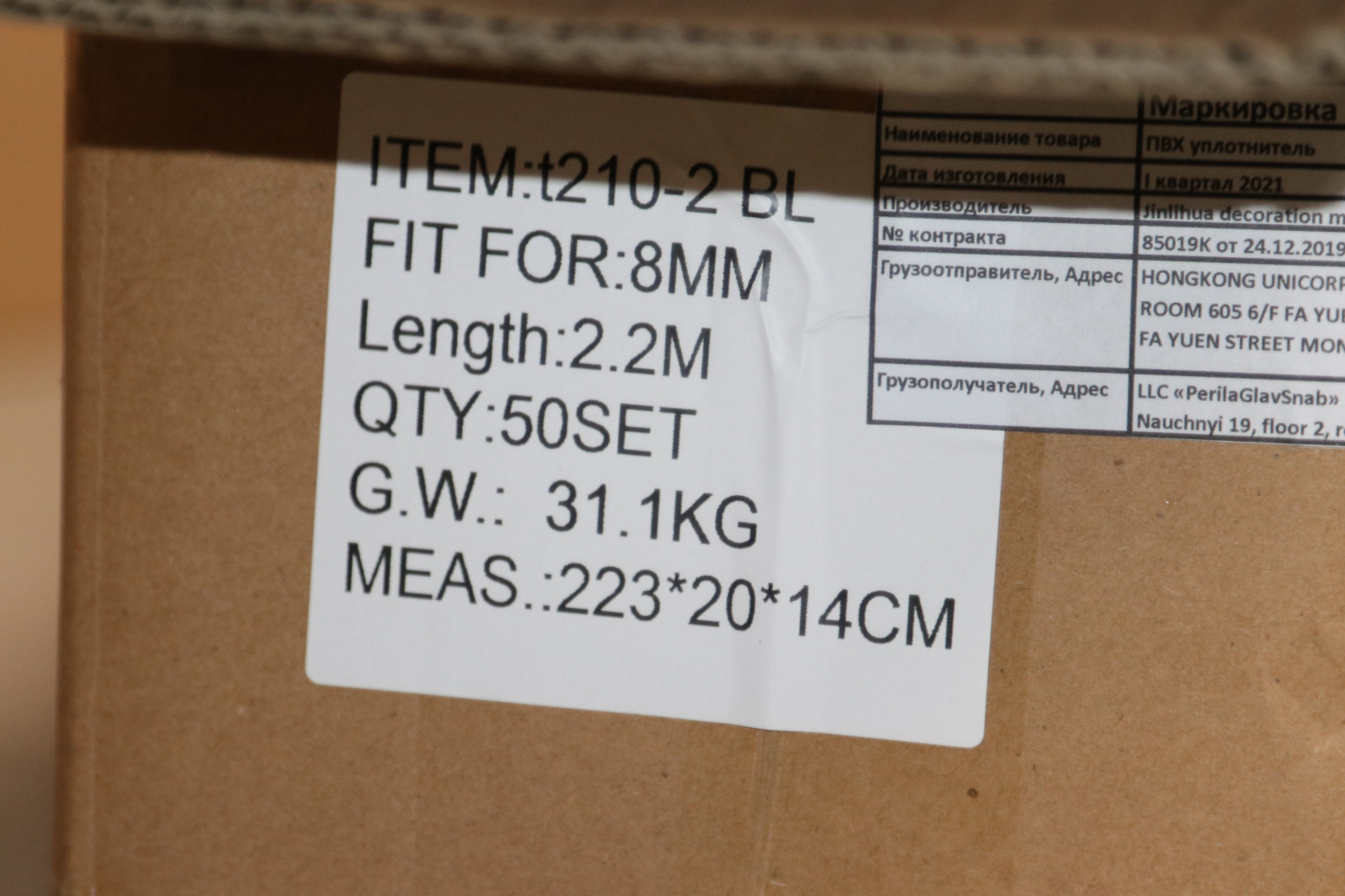 Комплект уплотнителей для стекла 8мм (2 шт.), полупрозрачный черный, стекло-стекло, с магнитом 90°/180°, 2,2 м t210-2 BL