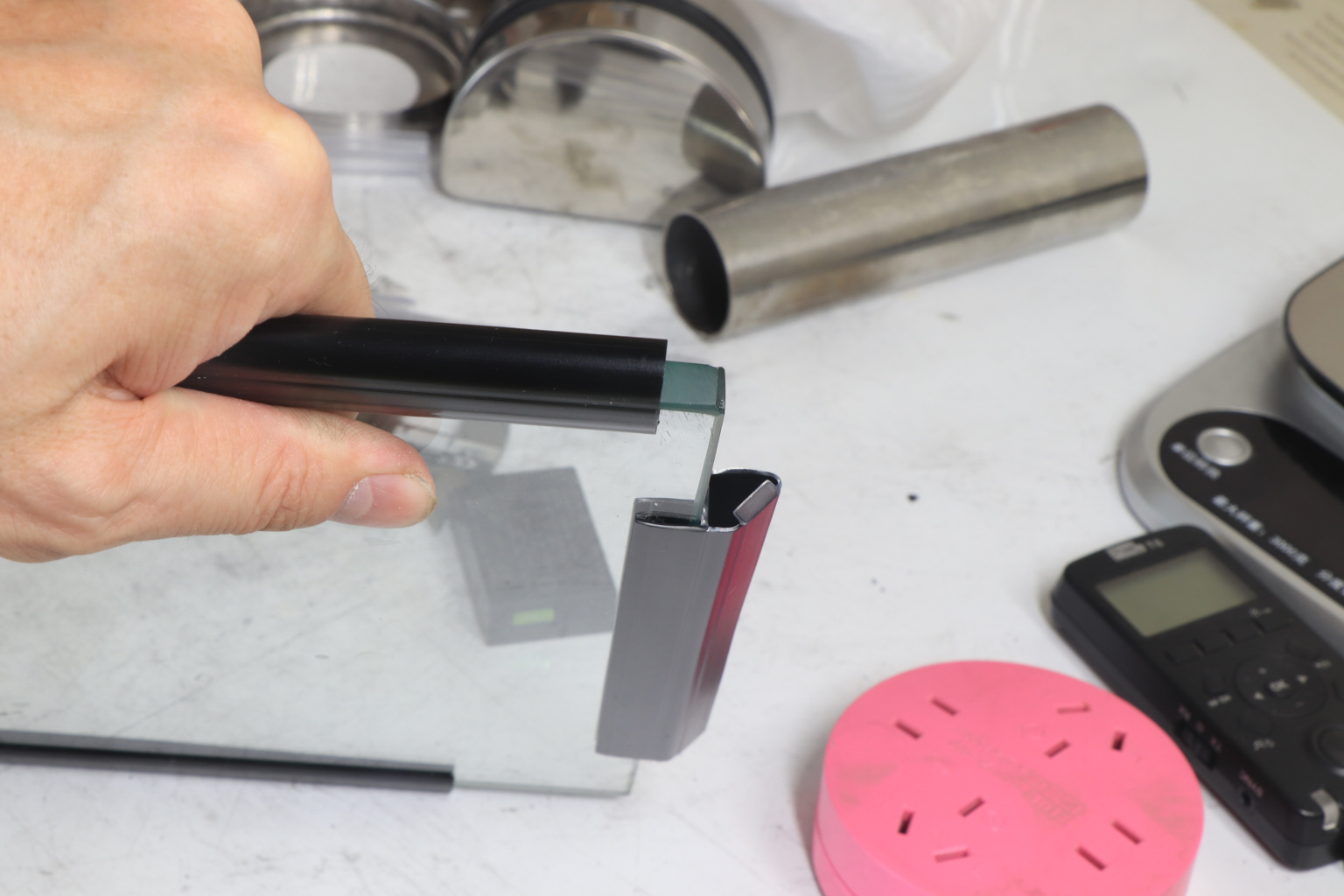Представляет собой комплект из двух профилей с магнитом. Монтируется по всему периметру стеклянного листа. Позволяет герметично соединять стеклянные панели между собой благодаря встроенному магниту.