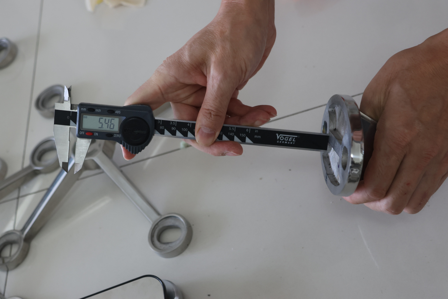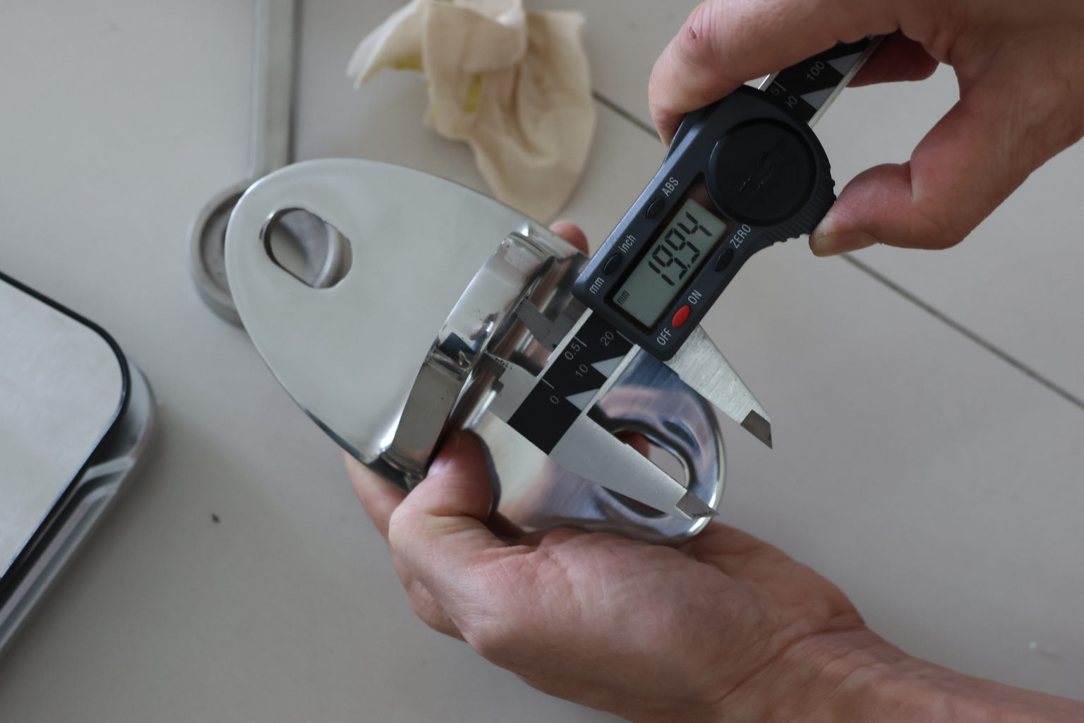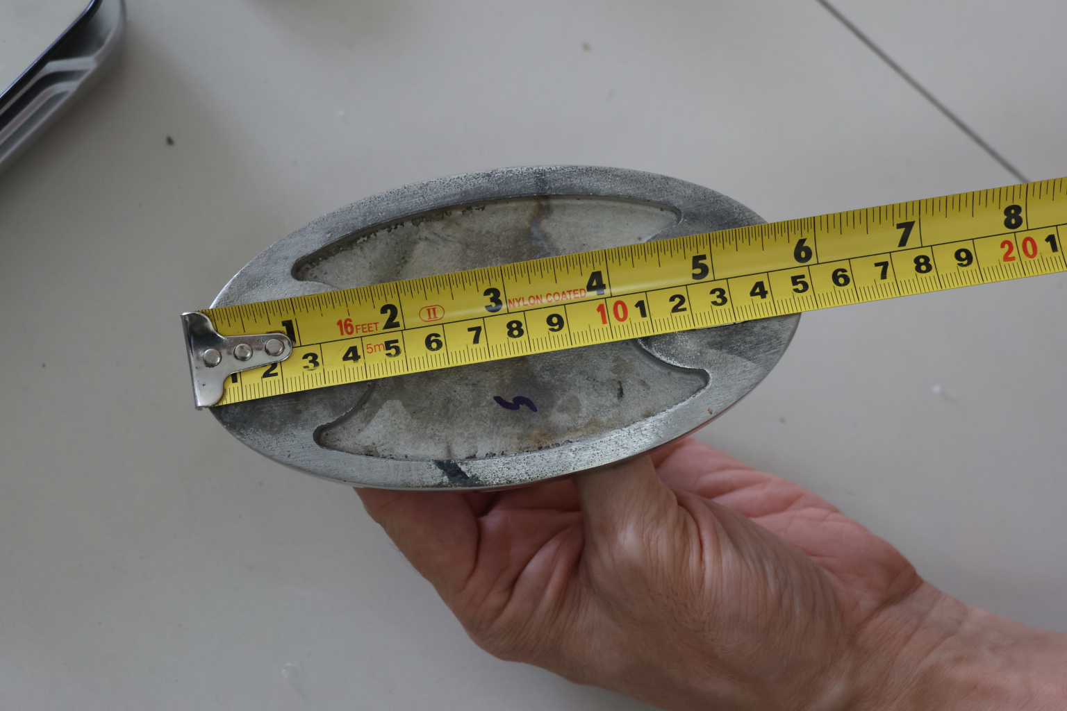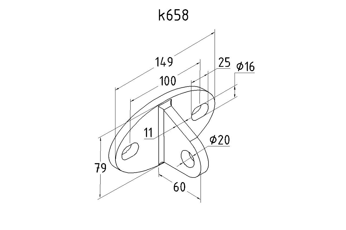 Крепление тяги к стене. Литая, полированная деталь. Состоит из крепёжного элемента с двумя овальными технологическими отверстиями 16,3 на 25 мм для крепления к стене и выносной части с отверстием диаметром 20 мм для крепежа наконечника тяги. Выполнена из стали AISI 304. Ширина детали – 150 мм, расстояние между центрами крепёжных отверстий – 105 мм. Выносная часть выступает на 48 мм от стены.
