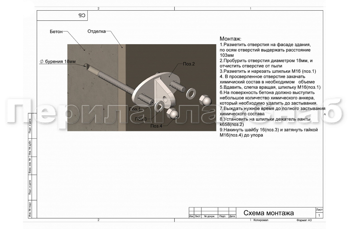 - Надёжность. Конструкция детали позволяет производить крепление на 2 шпильки и за счёт жёсткой фиксации не дает детали двигаться. Таким образом в процессе эксплуатации не происходит ослабление крепежа к стене.