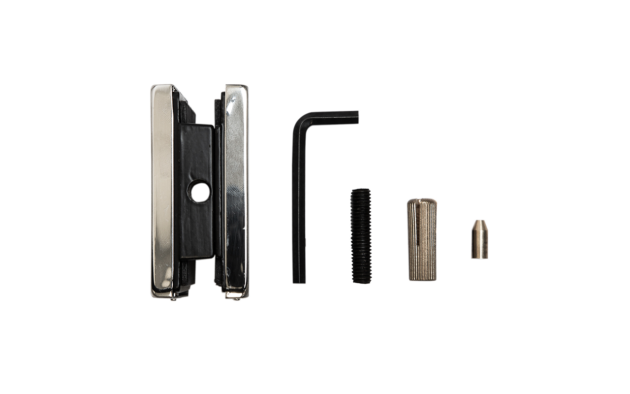 В комплект идёт дюбель для крепления в стену, фиксируем его в стену и накручиваем на коннектор 191. Коннектор разбирается на две половинки, затем к нему прикладывается стекло со специальными полукруглыми вырезами, а далее второй половинкой стекло зажимается.
