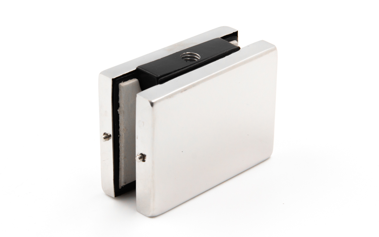 Служит для крепления стеклянного полотна к бетонному или кирпичному проему под углом 90*. Для стекла 10-12 мм.