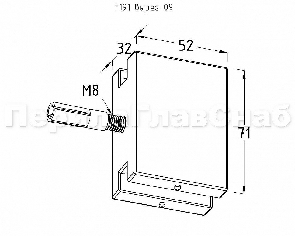 Коннектор стена-стекло с анкером, полированный, вырез 09 t191 PSS
