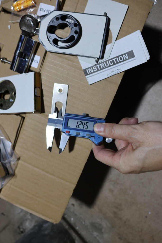 снимаем крышки замка, с помощью шестигранника раскручиваем замок на две части, фиксируем замок в заранее заготовленный вырез стекла. И обратно собираем- закручиваем замок и закрываем крышки