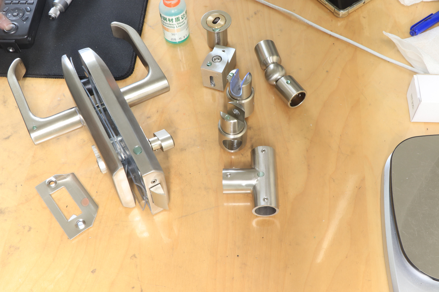 С помощью шестигранников откручиваем ручки замка, вертушку на личинке и с торца замка два винта откручиваем и снимаем крышки. И фиксируем замок в подготовленный вырез в стекле. Далее закручиваем и фиксируем обратно замок и после- крышки и ручки ставим на место.