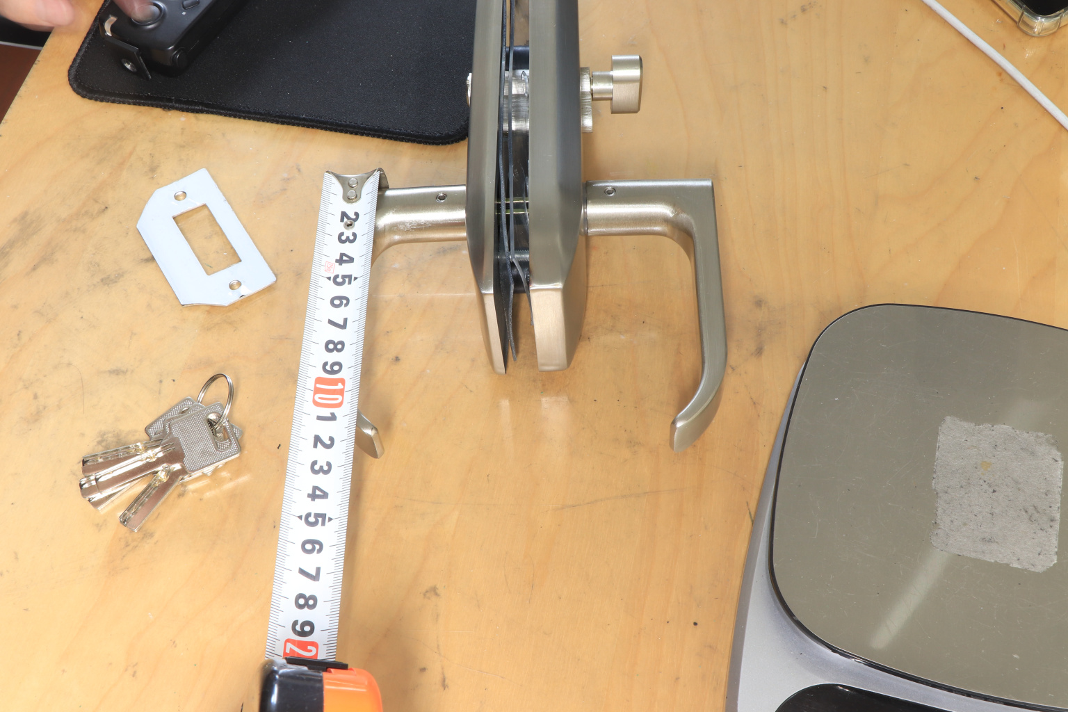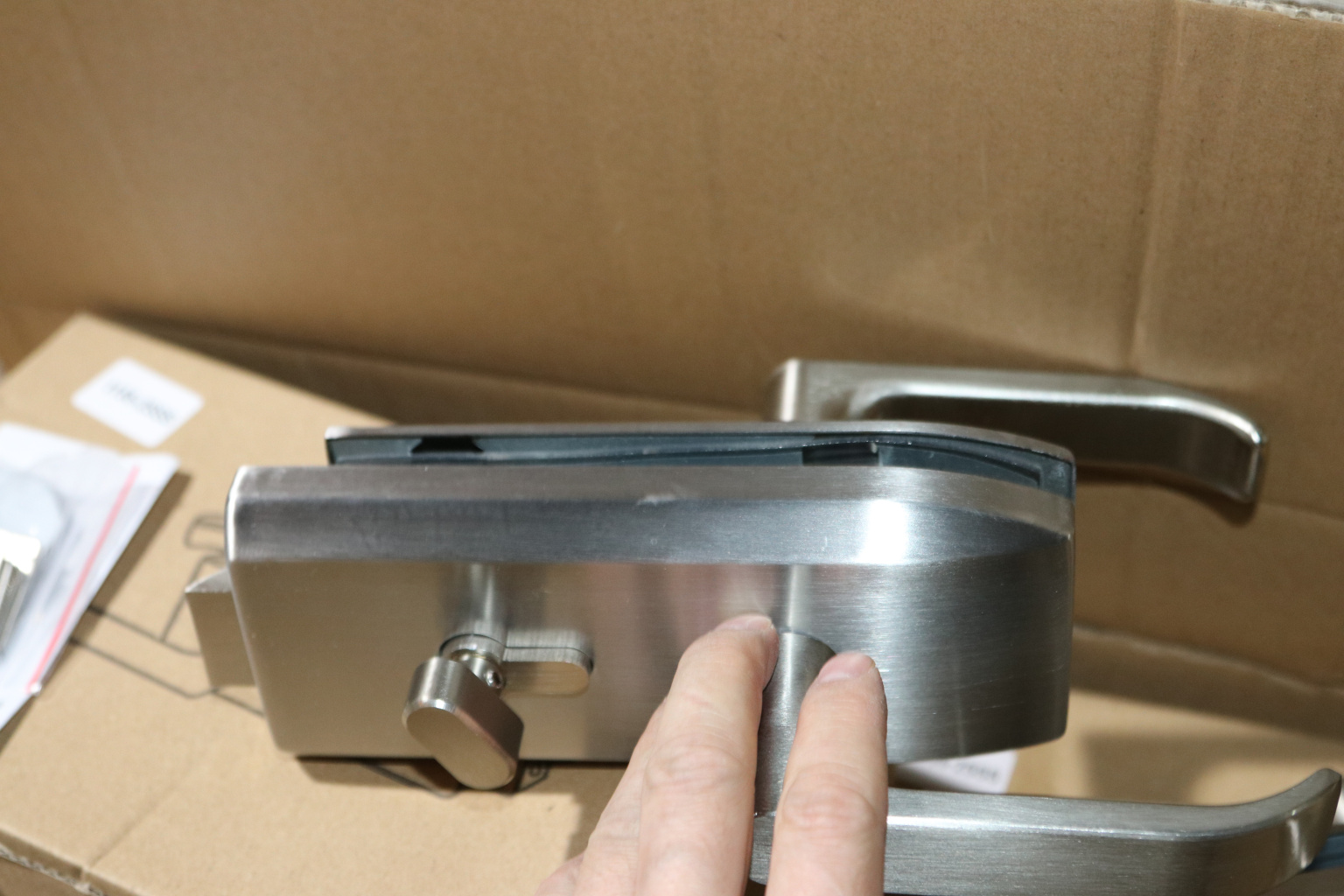 Замок с нажимной ручкой монтируется на стеклянную дверь, толщина стекла 8-12 мм.