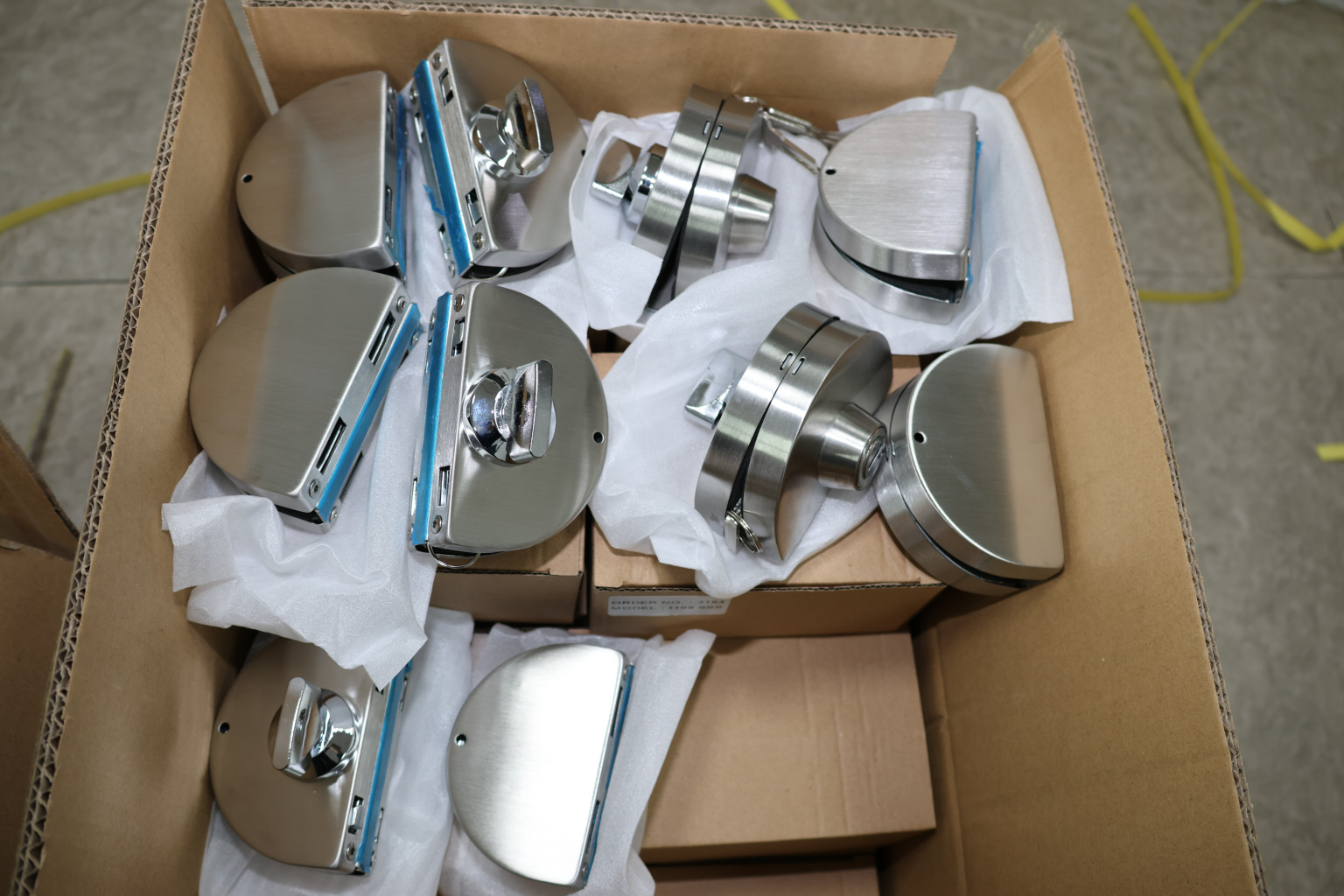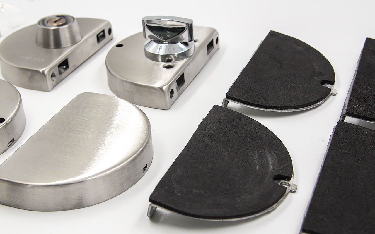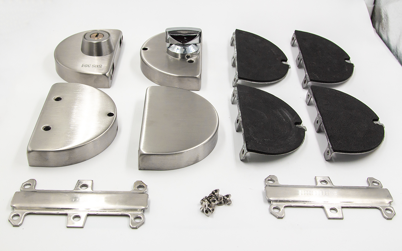 замок для раздвижных дверей, с ответной частью на стекло устанавливается без вырезов в стекле, таким образом, его можно поставить уже после монтажа раздвижных дверей.