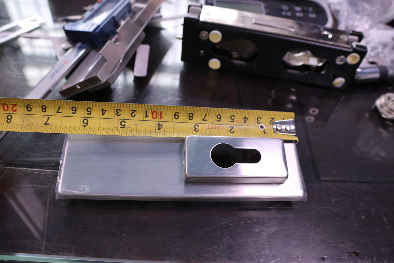 Замок для стеклянной двери центральный с прямоугольным ригелем, шлифованный, вырез 13 t152 SSS