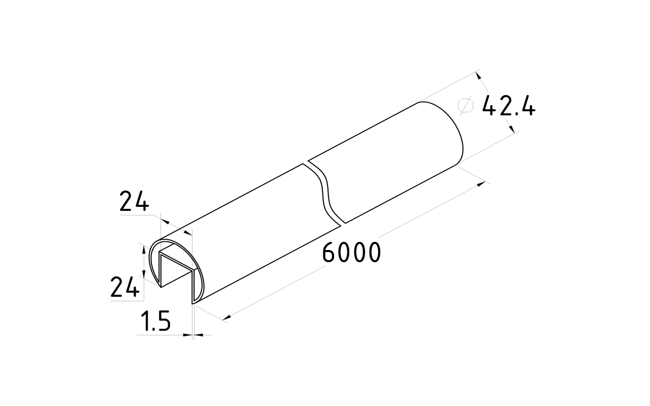 Труба Ø42.4, с пазом 24х24, под стекло, полированная, EURO (AISI 316L) k827