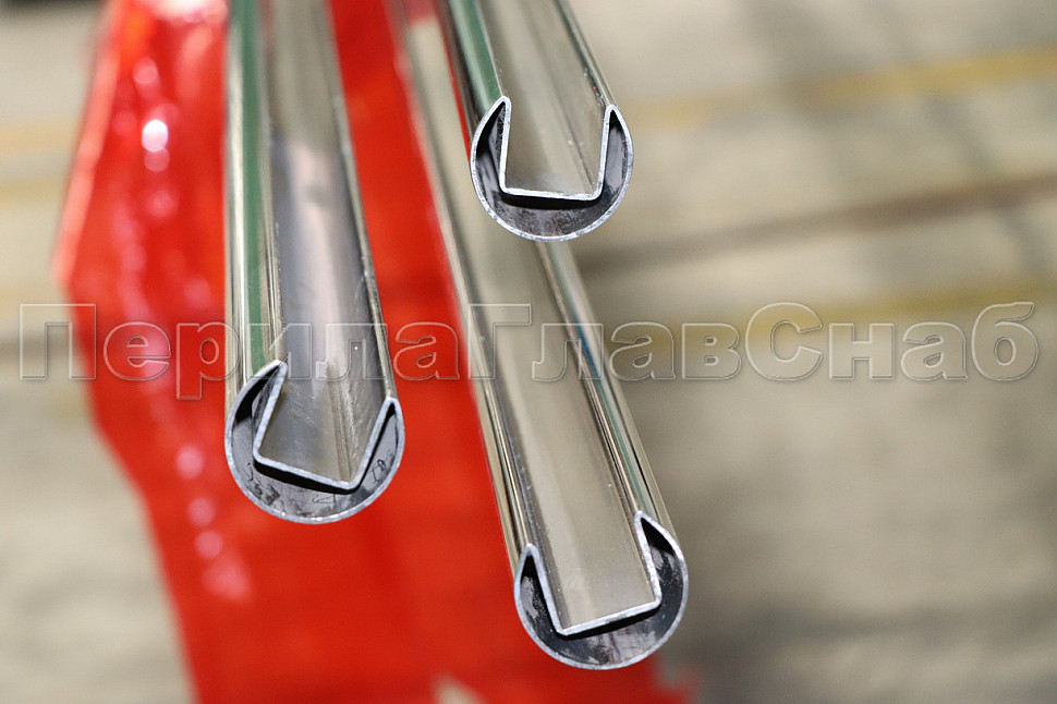 Труба Ø48.3 мм, с пазом 27х30 мм под стекло, полированная (AISI 201) k822