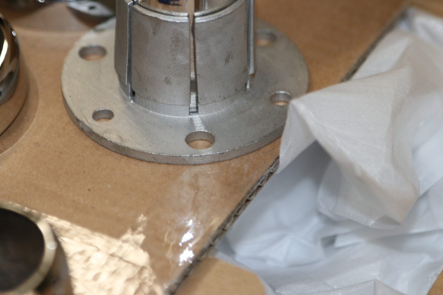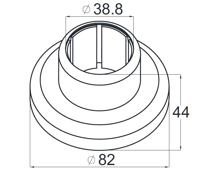 Цанга Ø38.1 мм, низ 8х82 под анкер 8 мм, (AISI 316), (для установки на деревянную ступень, бетон, крепление на 3 анкера М8) k026-3