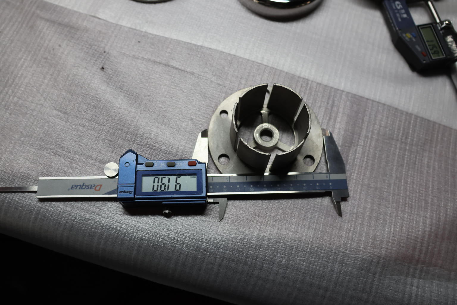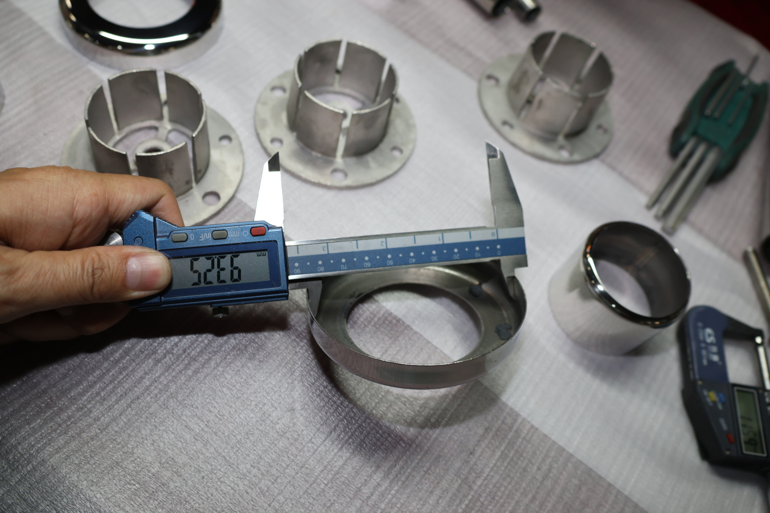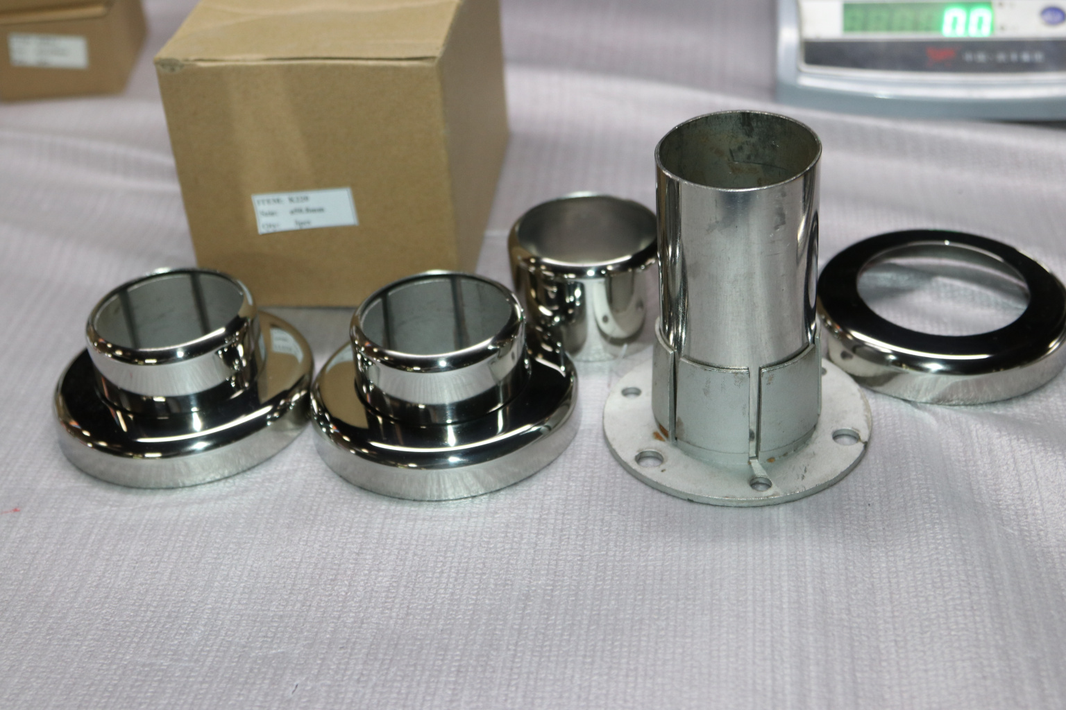 Цанга под трубу диаметром 50.8 мм. Деталь полированная, низ 10х90 под анкер 10 мм, 3 анкера М8. Марка стали - AISI 304