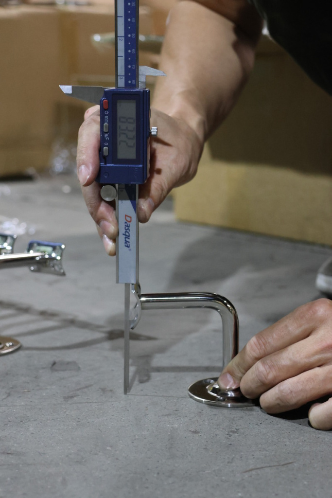 Благодаря оптимально подобранному выносу, пристенный поручень достаточно удален от поверхности стены, чтобы не задевать скользящей вдоль трубы поручня рукой идущего по лестнице человека. Но при этом поручень располагается близко к стене, дабы не сужать свободное пространство полезной ширины лестничного марша. Габариты: вынос 68х70мм, Ø63х85мм, ложемент 28х48мм
