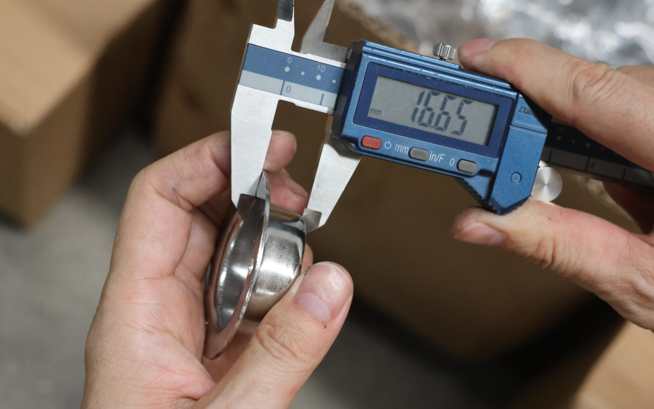 Фланец штампованный с тремя отверстиями, внешний. Диаметр 68 мм, полированный. Деталь для трубы диаметром 38.1 мм, толщина 1.3 мм. Марка стали - AISI 304
