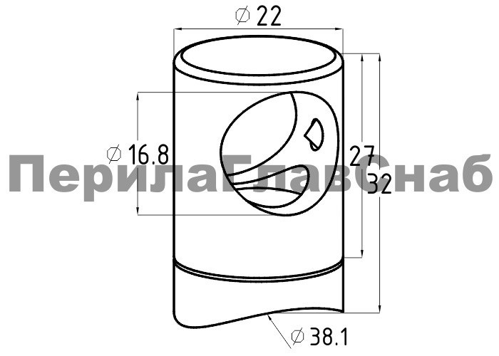Предназначен для крепления нержавеющего ригеля (тетивы, струны) диаметром 16 мм к стойке ограждения Ø38.1 мм.