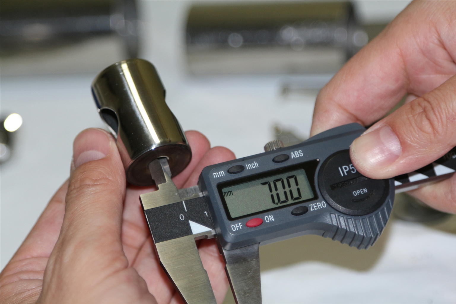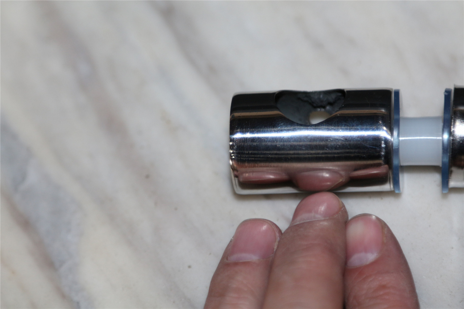 Ригеледержатель крепится насквозь к квадратной трубе стойки, входящим в комплект поставки стяжным винтом М8.Таким образом, с одонй стороны стойки видна шайба, а с другой — корпус ригеледержателя (бочонок) с зажатым внутри него ригелем.