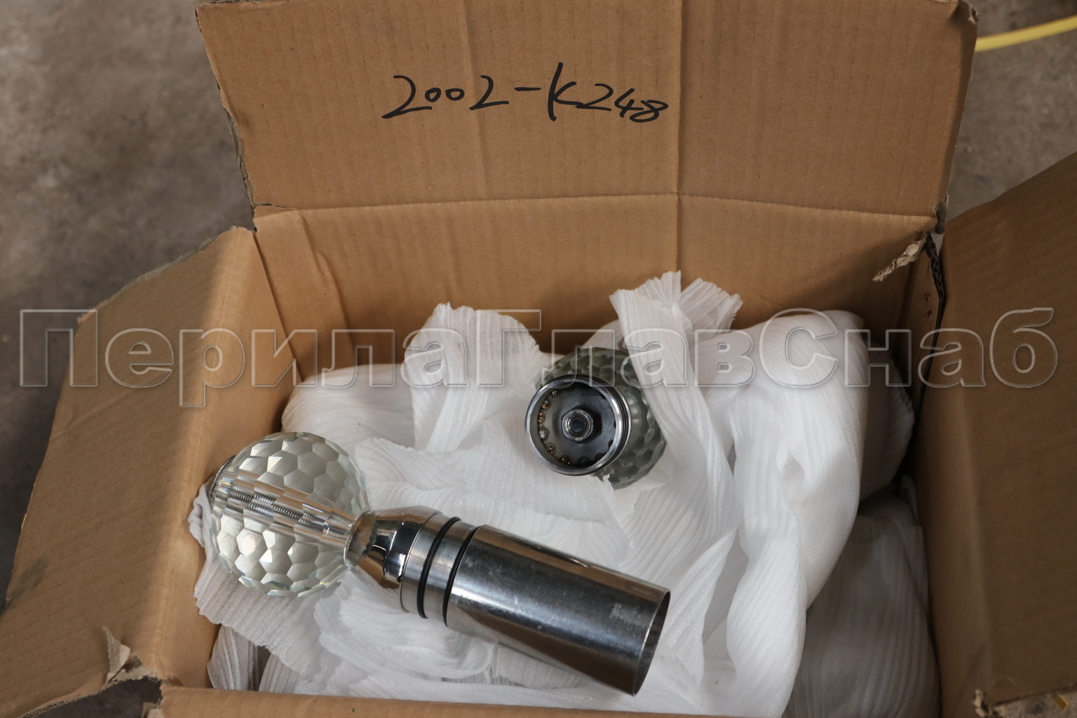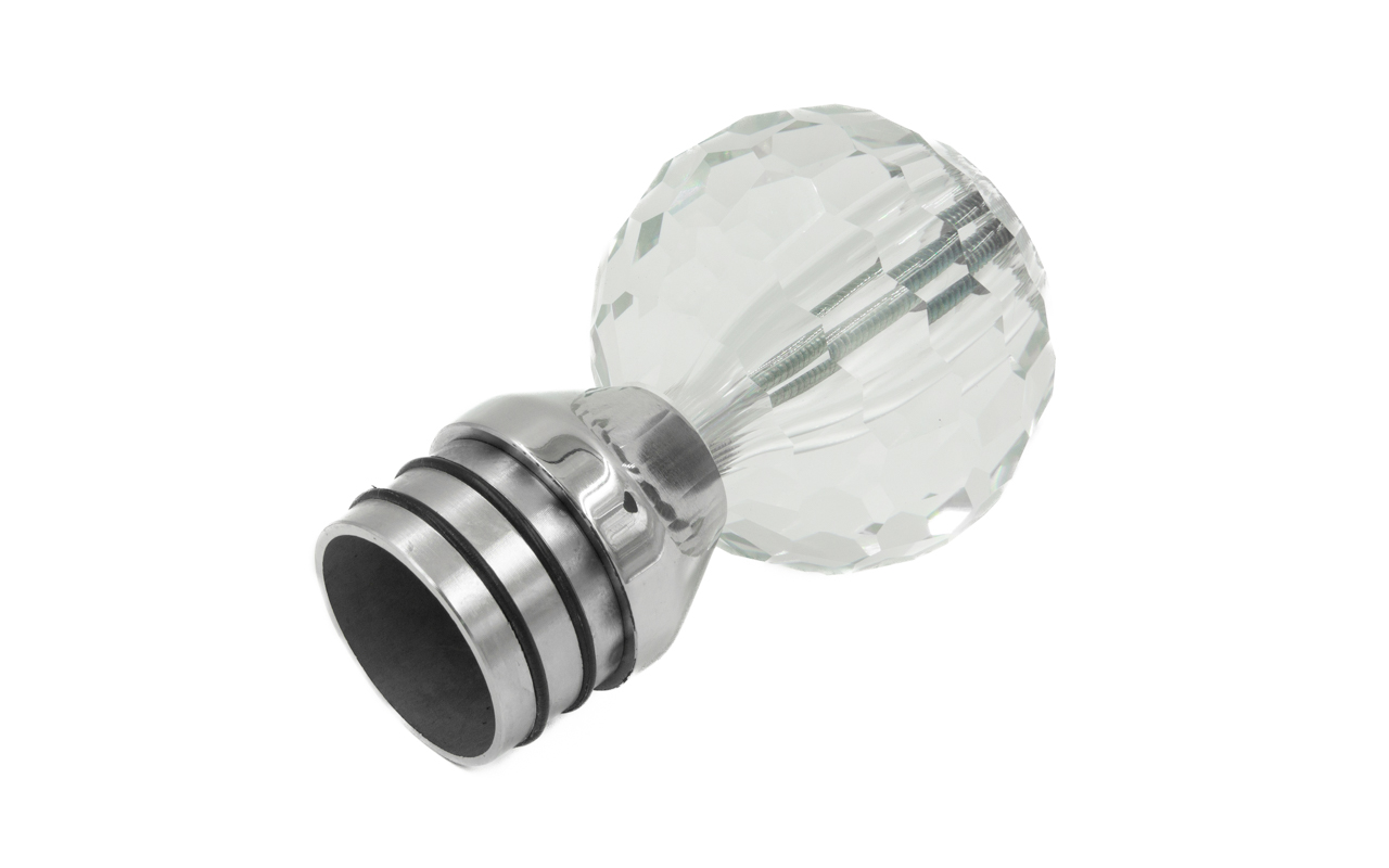 Стеклянный шар, наконечник на стойку диаметром 50.8 мм, с алюминиевой системой фиксации, прозрачный. Деталь литая, полированная. Марка детали - AISI 304