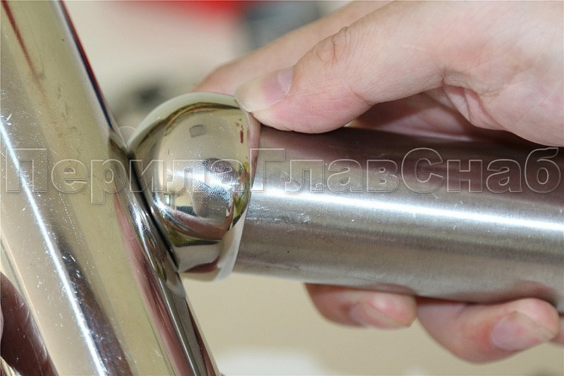 Самый распространенный тип наконечников для соединения круглых стоек и круглых поручней на наклонных маршах (прямых площадках используется k017-2.