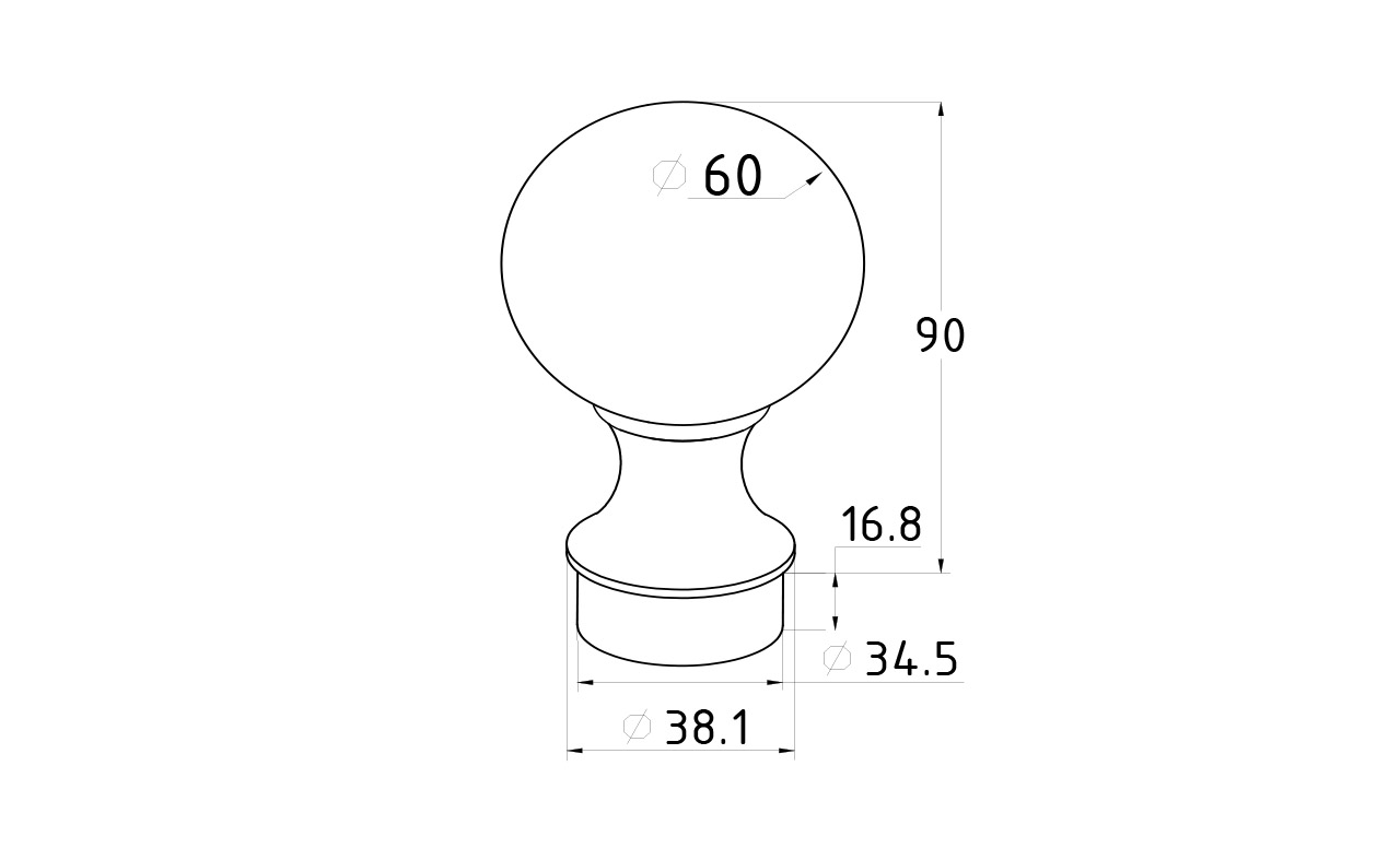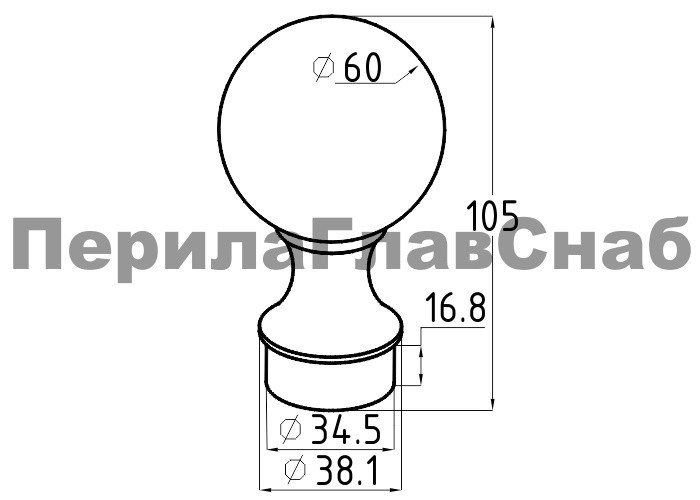 Шар устанавливается на стойку Ø38,1 мм самосборного или сварного ограждения (k819,k849).